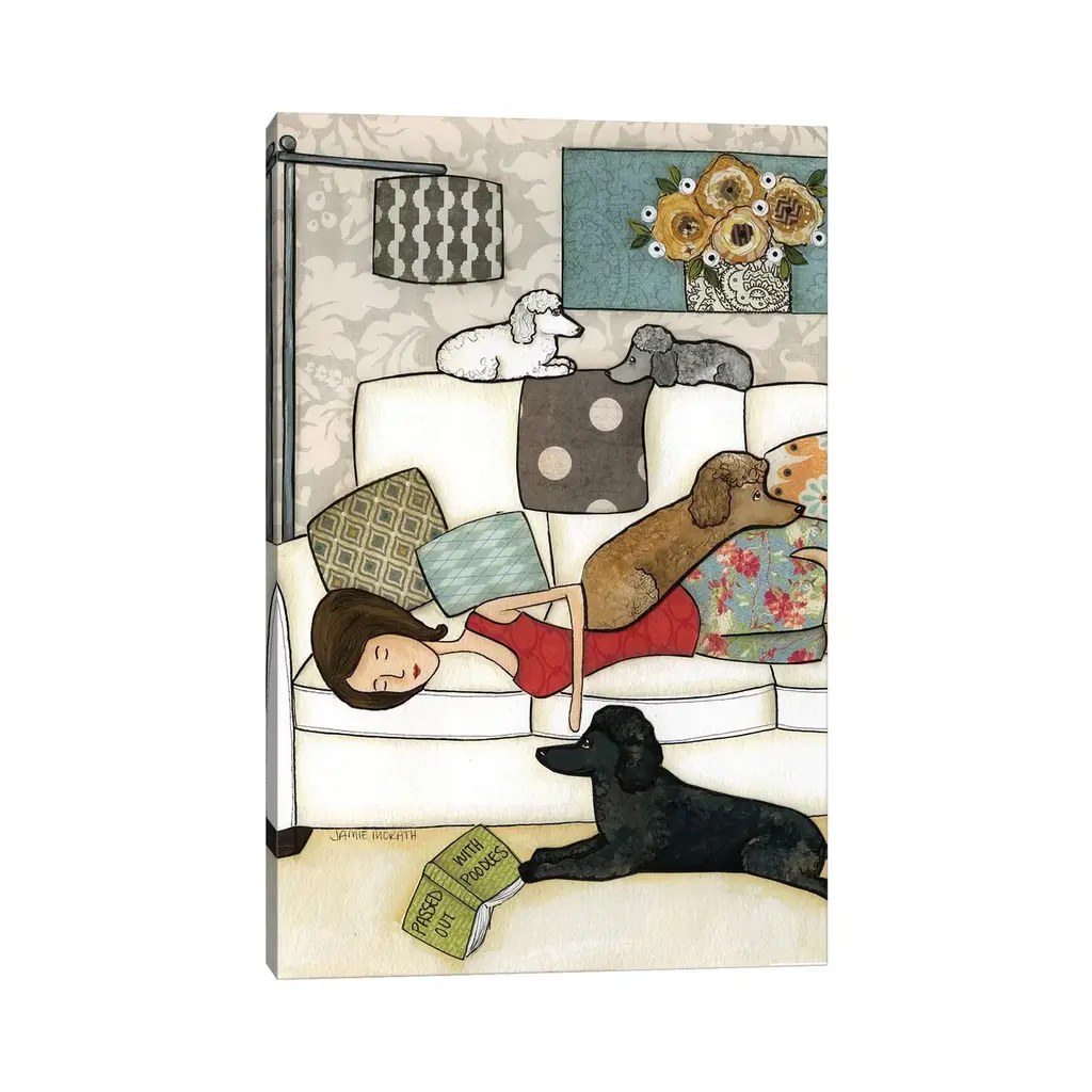 Icanvas "Passed Out With Poodles" By Jamie Morath Canvas Print - 12x8x0.75
