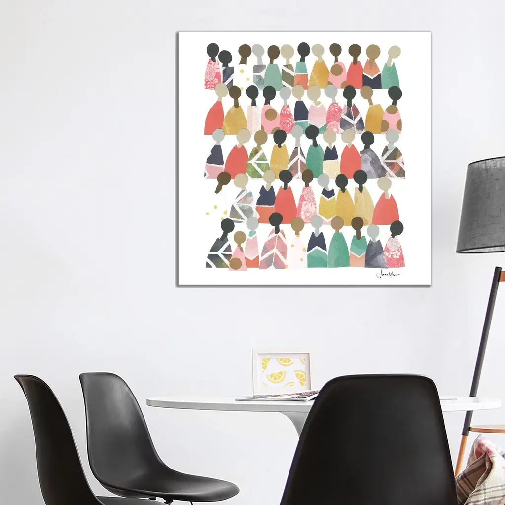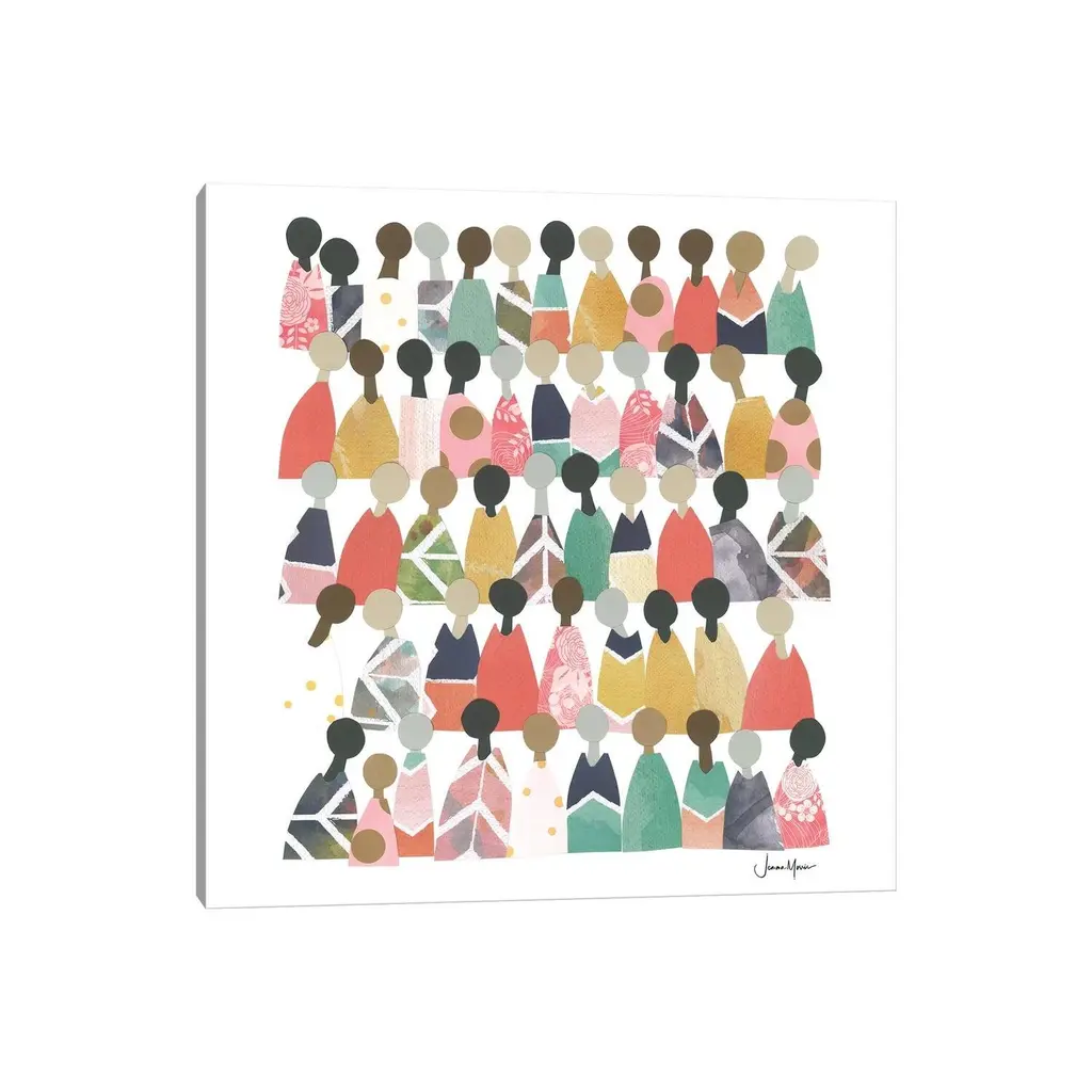 Icanvas "Pastel Diverse People Of Color" By Loulouartstudio Canvas Print - 12x12x0.75