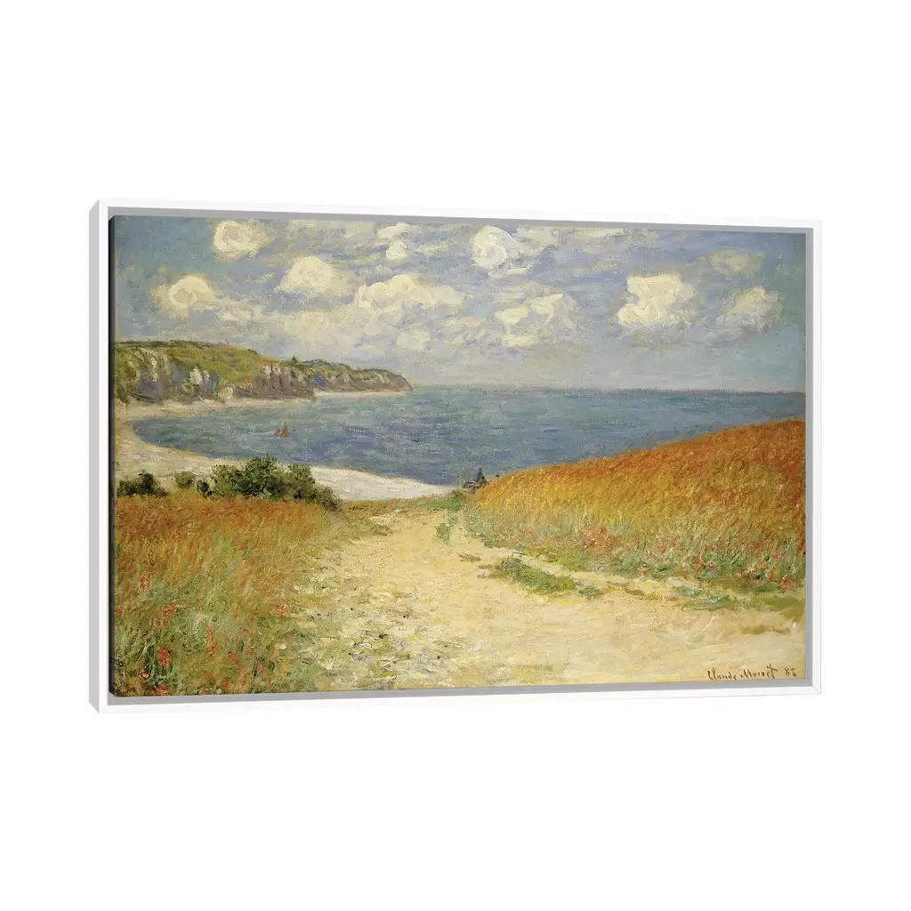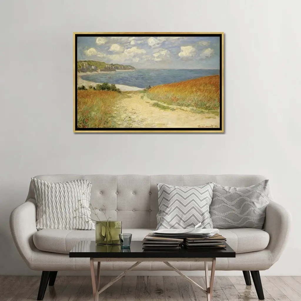 Icanvas "Path In The Wheat At Pourville, 1882 " By Claude Monet Framed Canvas Print - Gold - 26x40