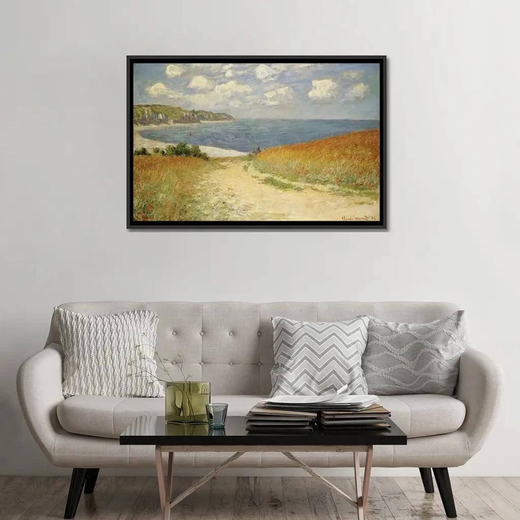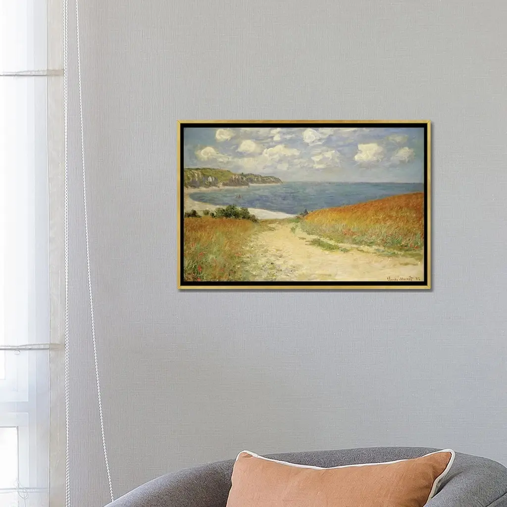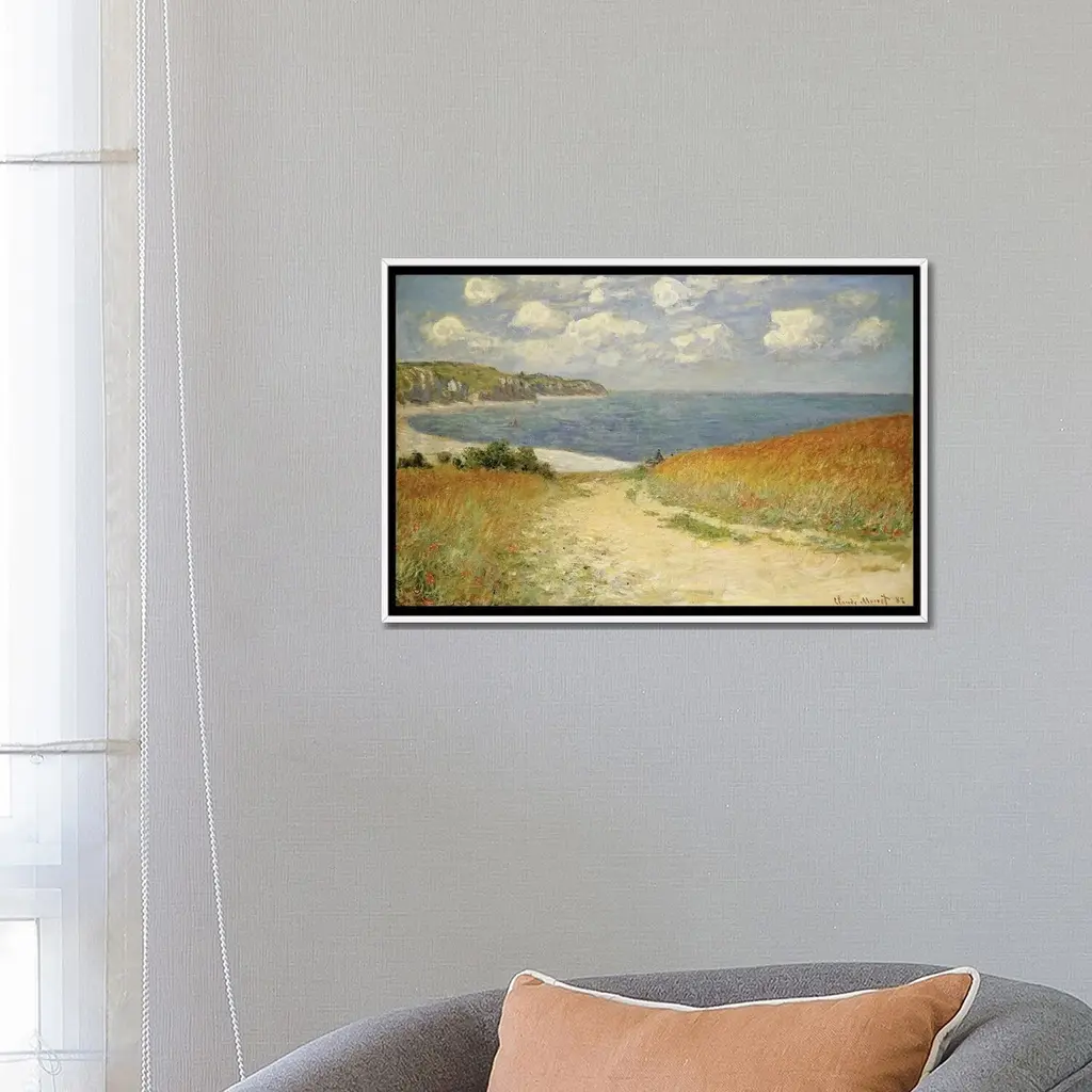 Icanvas "Path In The Wheat At Pourville, 1882 " By Claude Monet Framed Canvas Print - White - 18x26