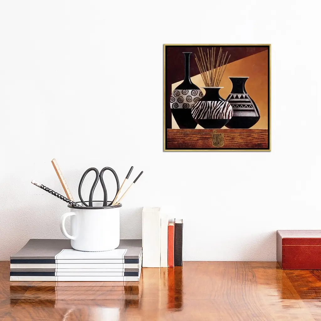 Icanvas "Patterns In Ebony I" By Keith Mallett Framed Canvas Print - 12x12 - Gold
