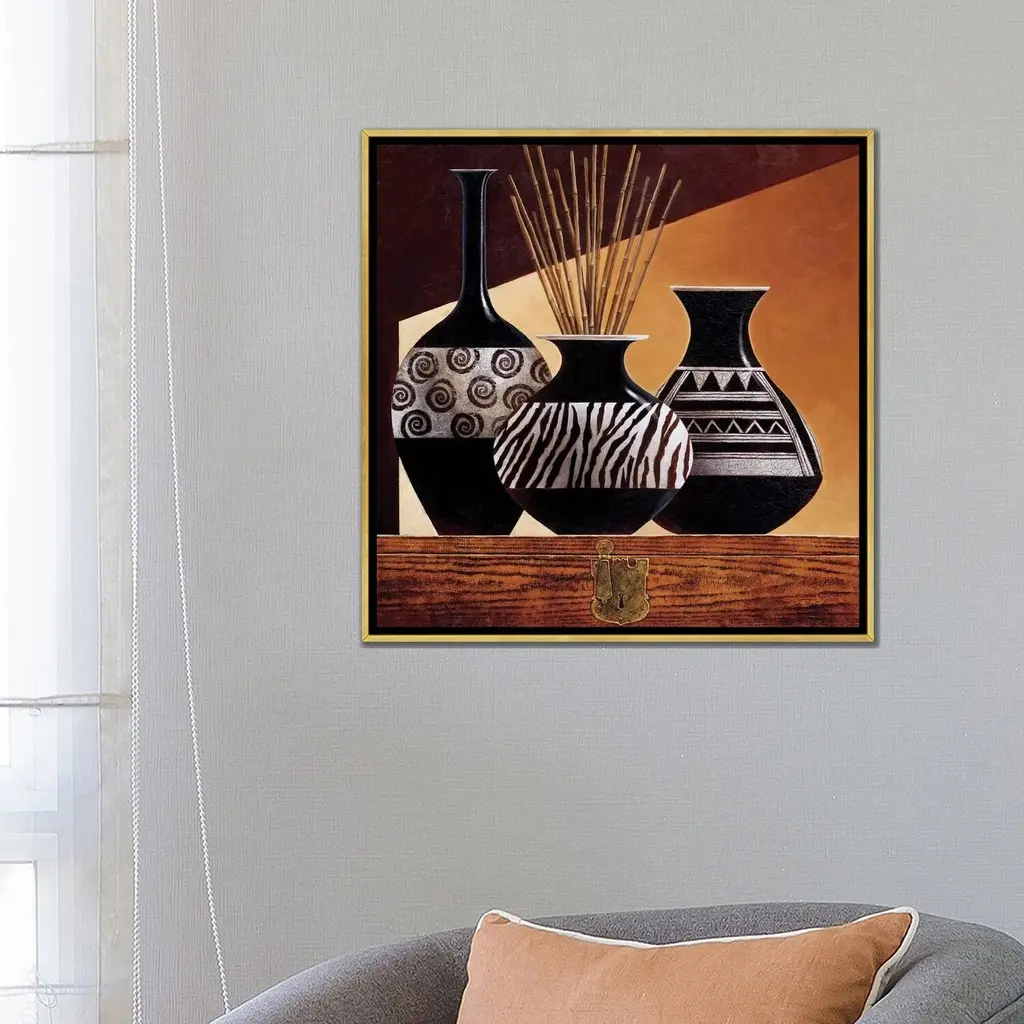 Icanvas "Patterns In Ebony I" By Keith Mallett Framed Canvas Print - 26x26 - Gold