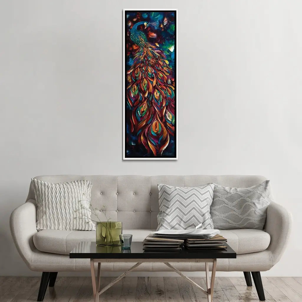 Icanvas "Peacock Ix" By Willson Lau Framed Canvas Print - 60x20 - White