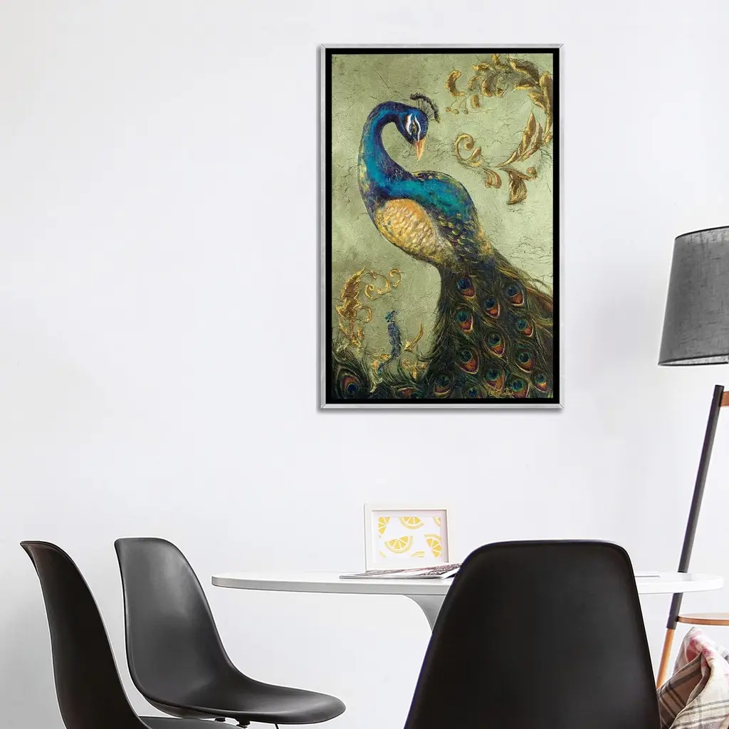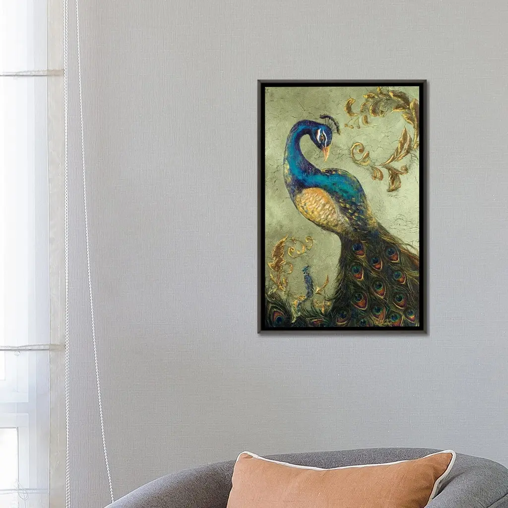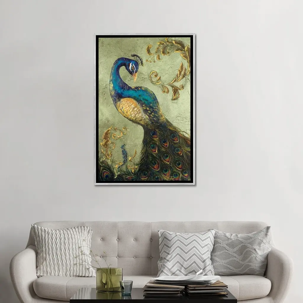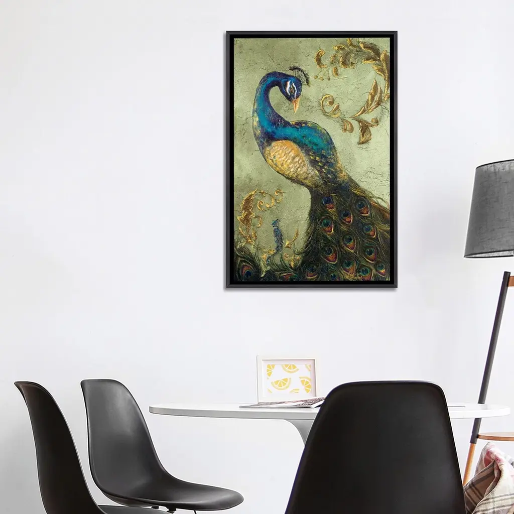 Icanvas "Peacock On Sage Ii" By Tiffany Hakimipour Framed - Charcoal - 40x26