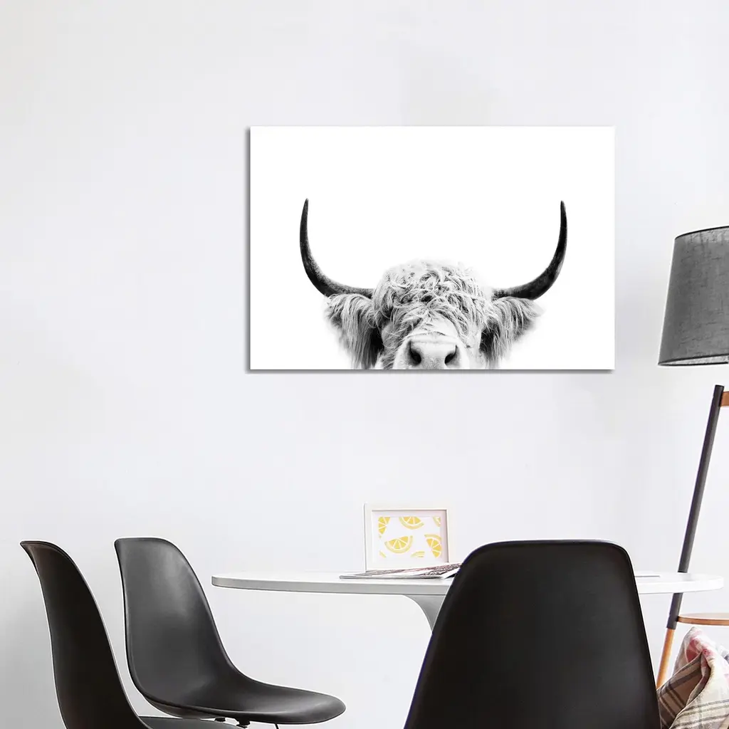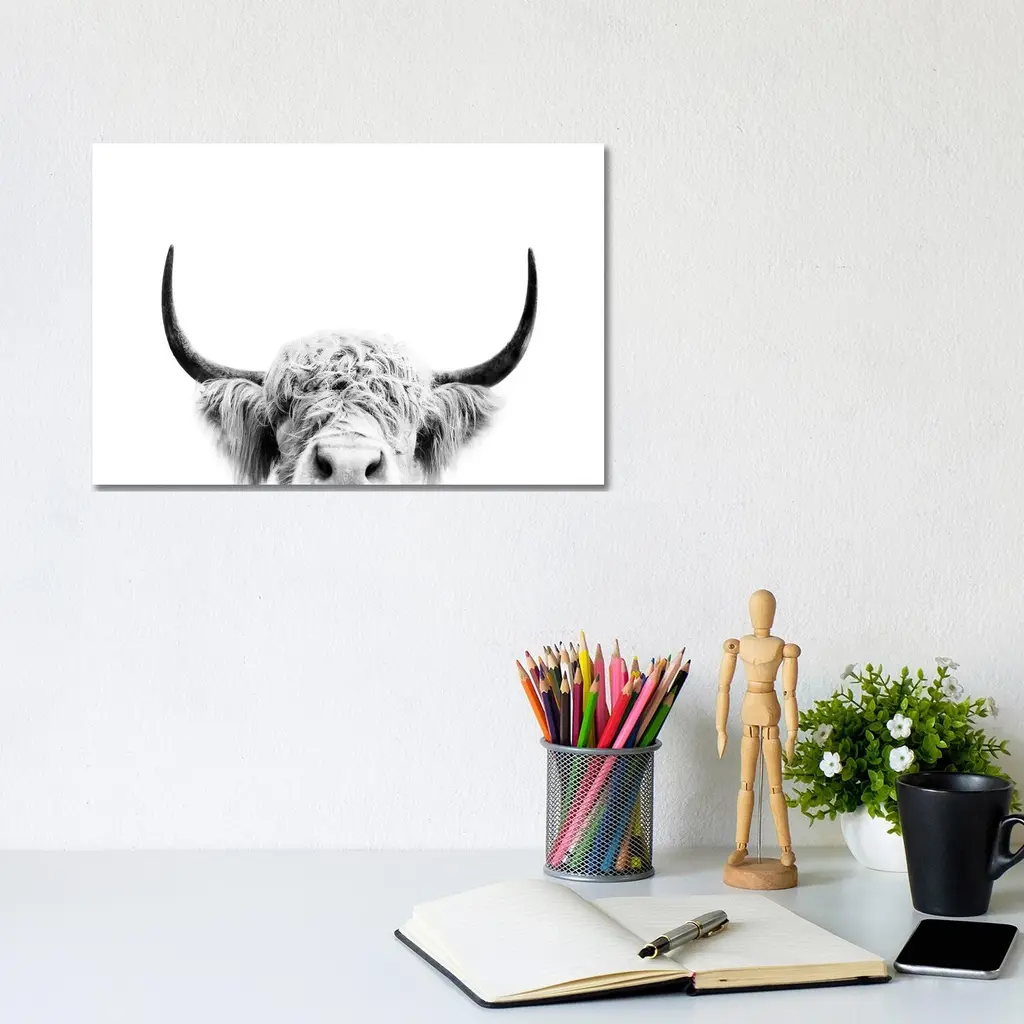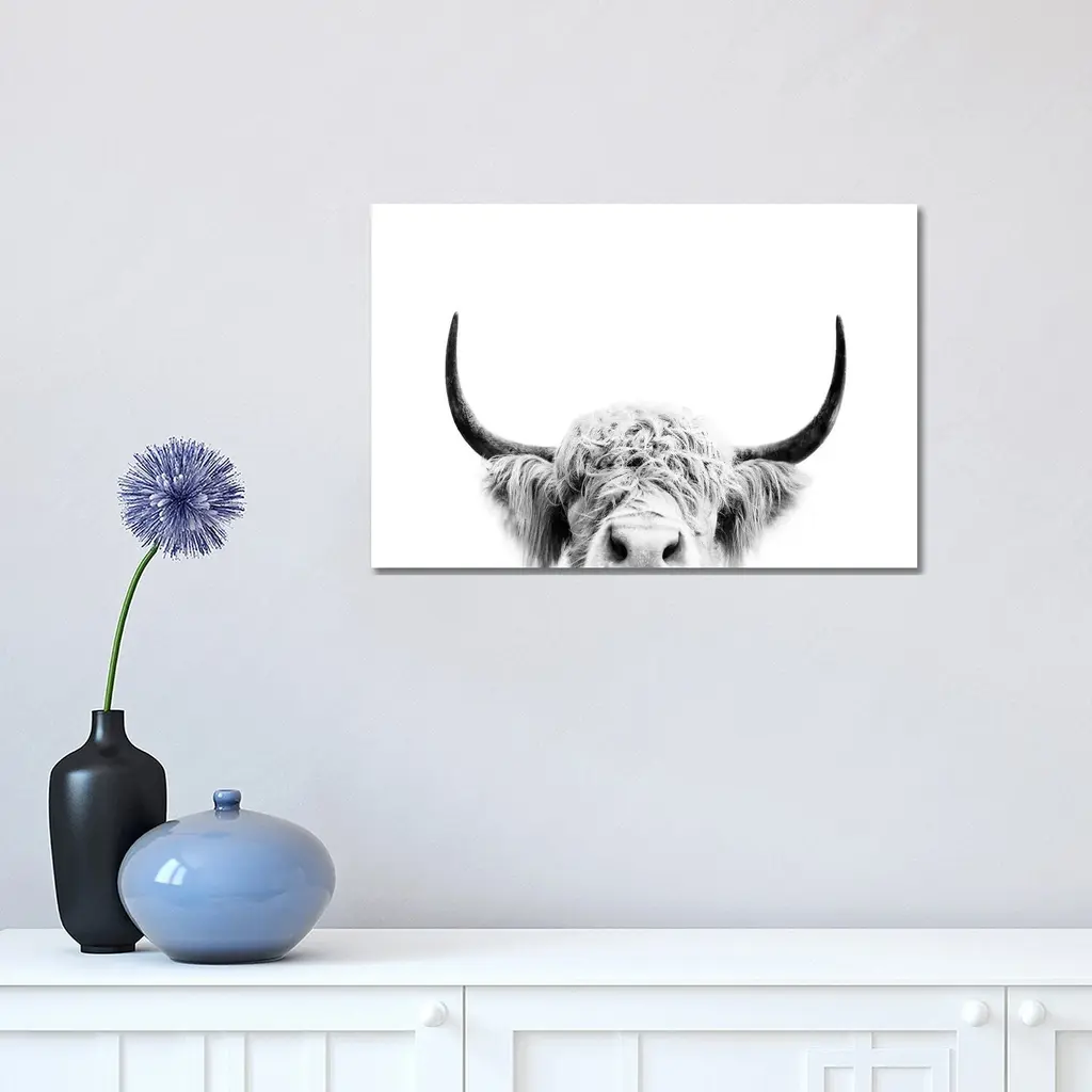 Icanvas "Peeking Cow In Black & White" By Sisi & Seb Canvas Print - 12x18x1.5
