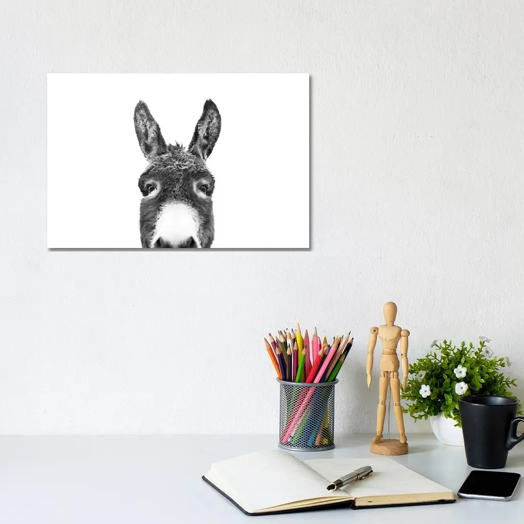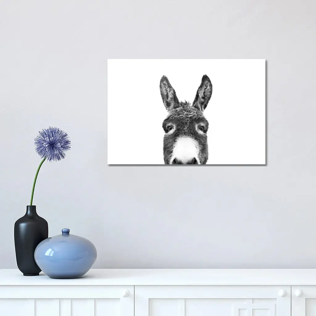 Icanvas "Peeking Donkey In Black & White" By Sisi & Seb Canvas Print - 8X12x0.75