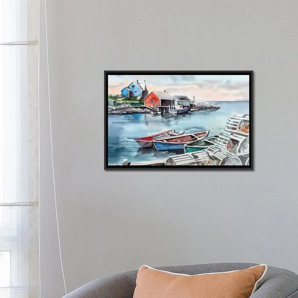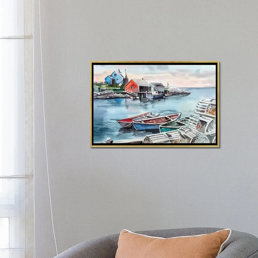 Icanvas "Peggys Cove" By Bill Drysdale Framed Canvas Print - Gold - 18x26
