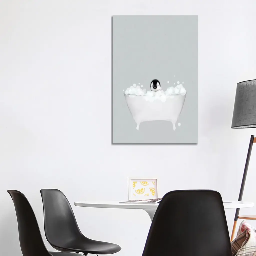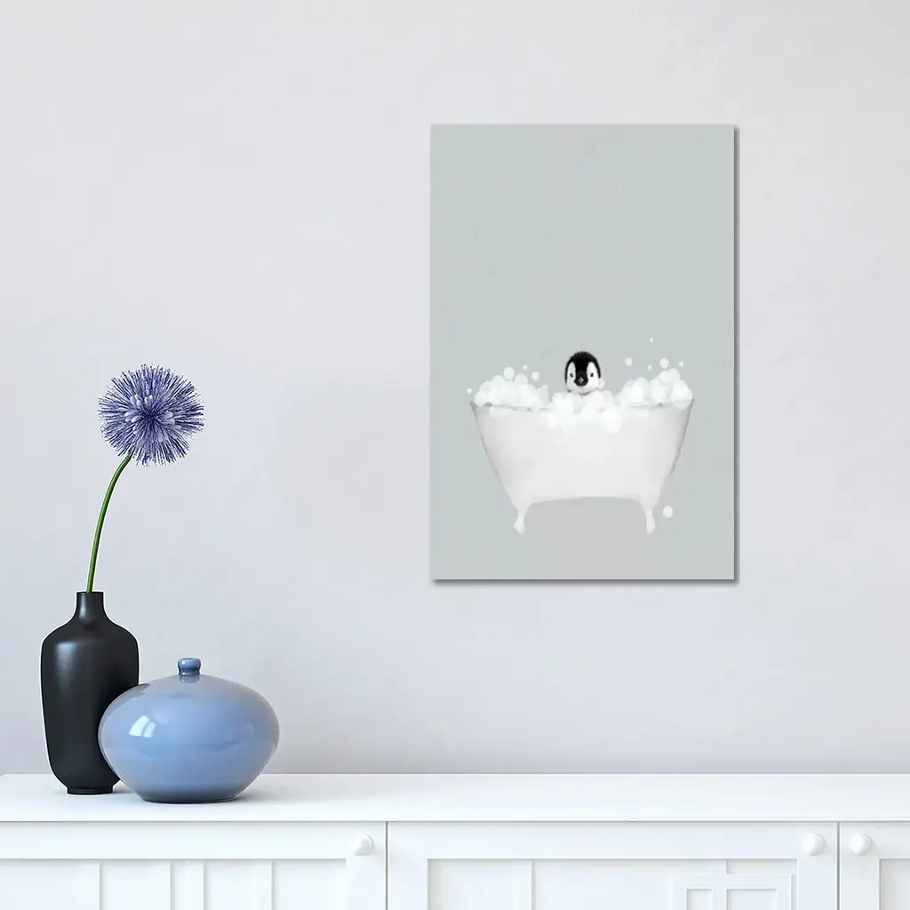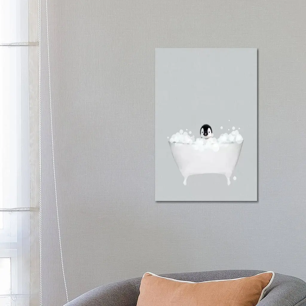 Icanvas "Penguin Blue Bath" By Leah Straatsma Canvas Print - 40x26x1.5