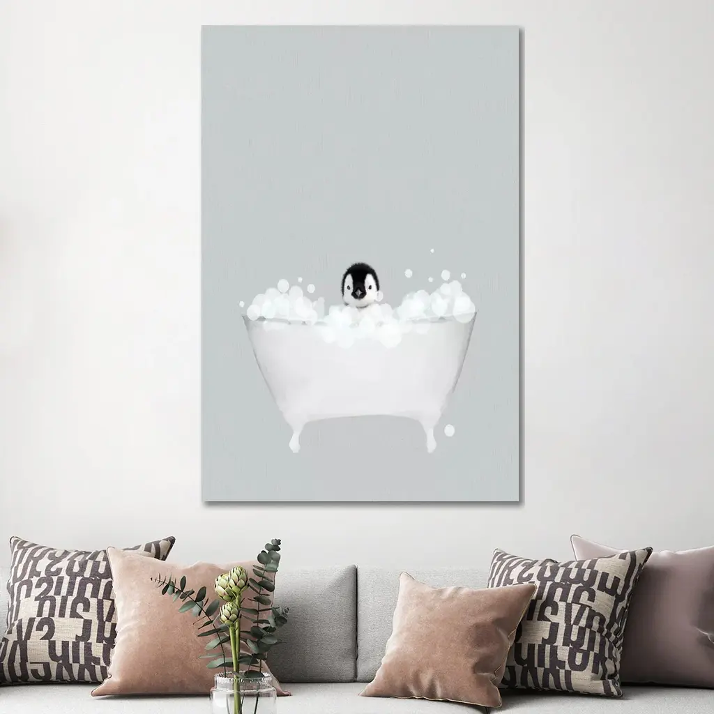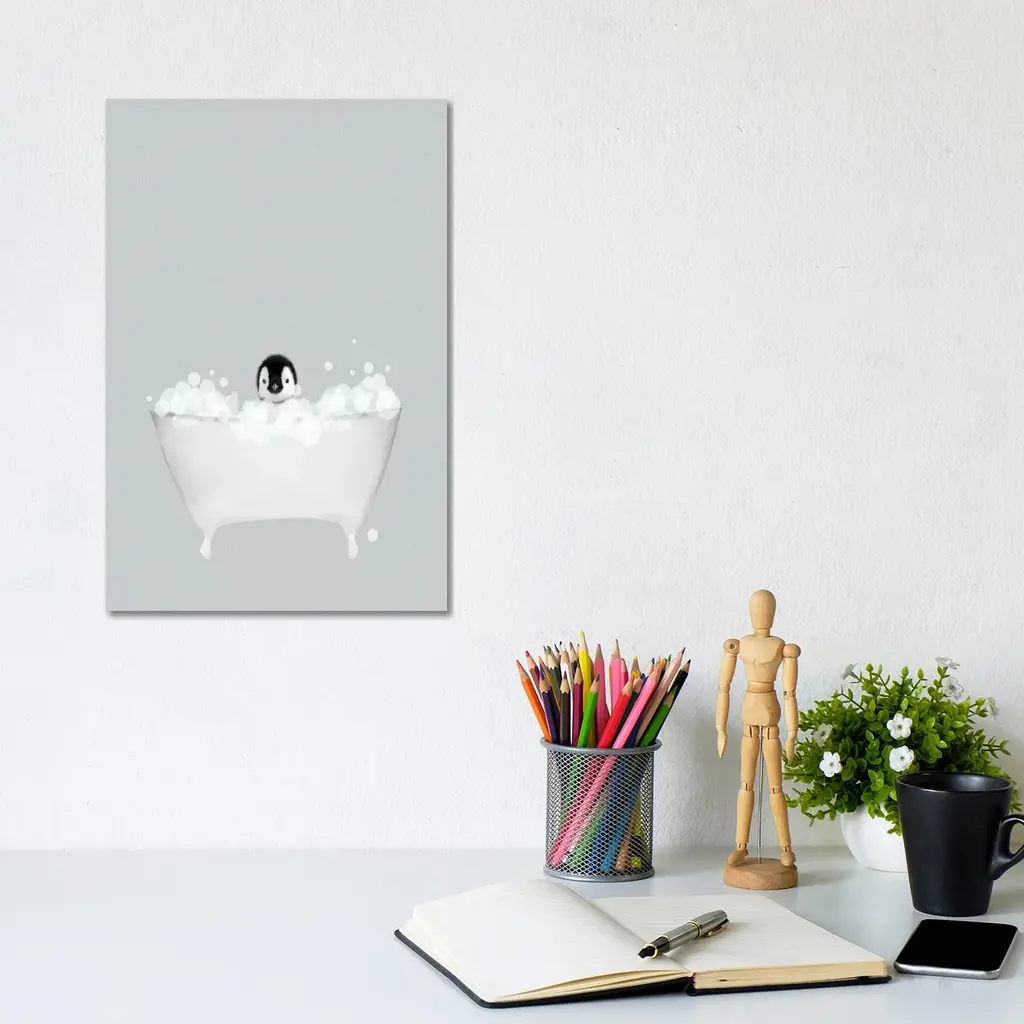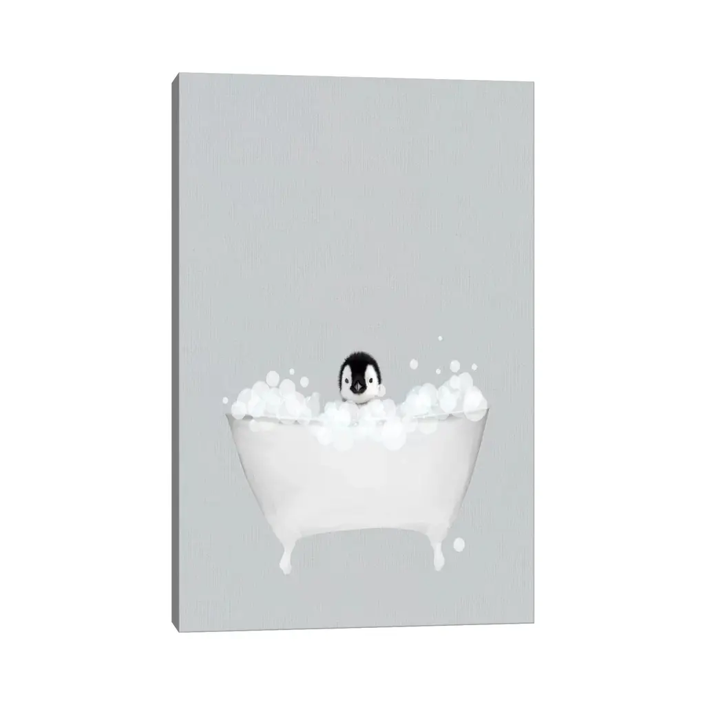 Icanvas "Penguin Blue Bath" By Leah Straatsma Canvas Print - 48x32x1.5
