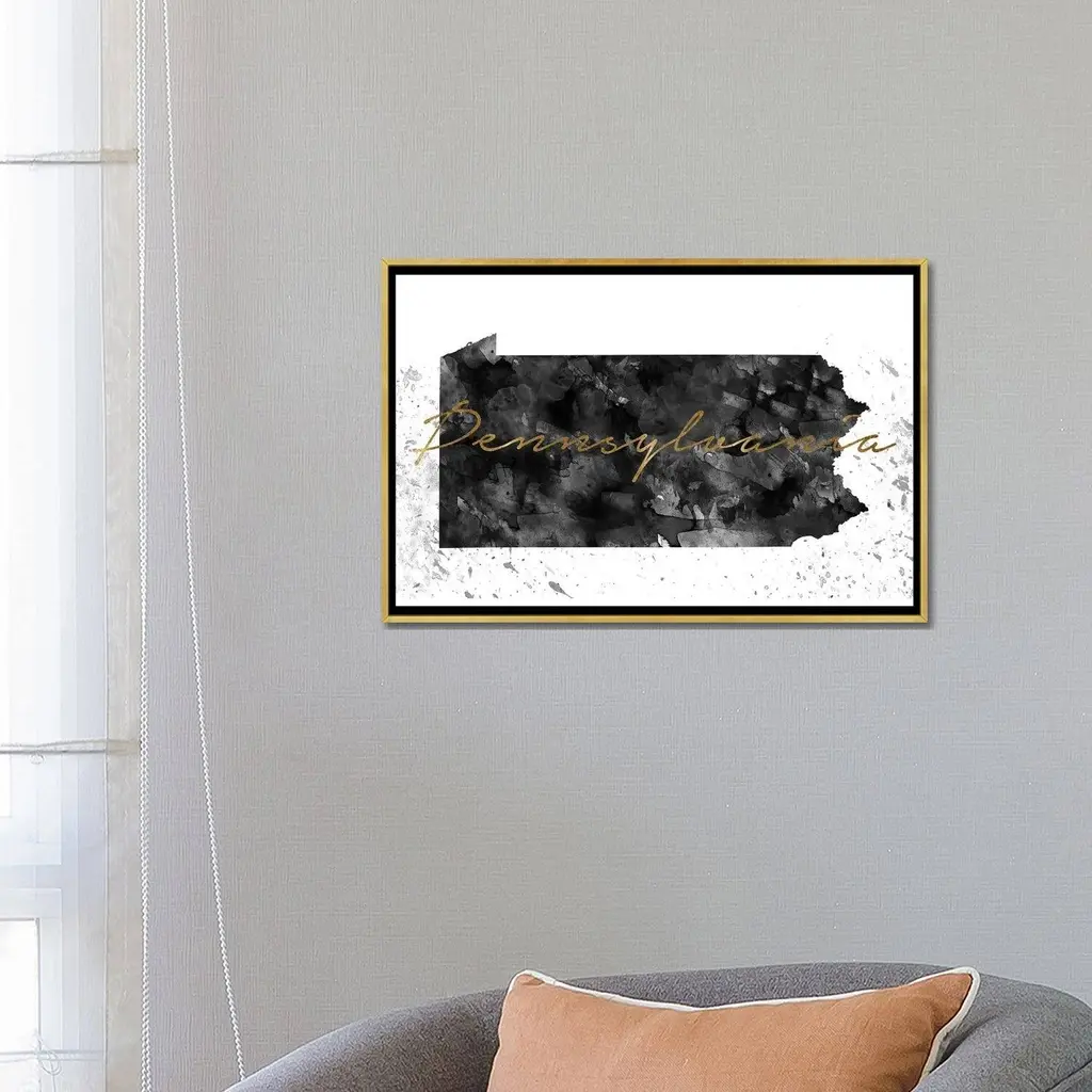 Icanvas "Pennsylvania Black And White Gold" By Walldecoraddict Framed Canvas Print - Black - 26x40