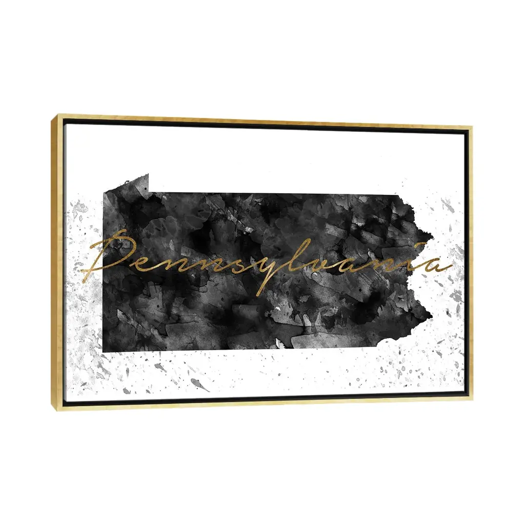 Icanvas "Pennsylvania Black And White Gold" By Walldecoraddict Framed Canvas Print - White - 18x26