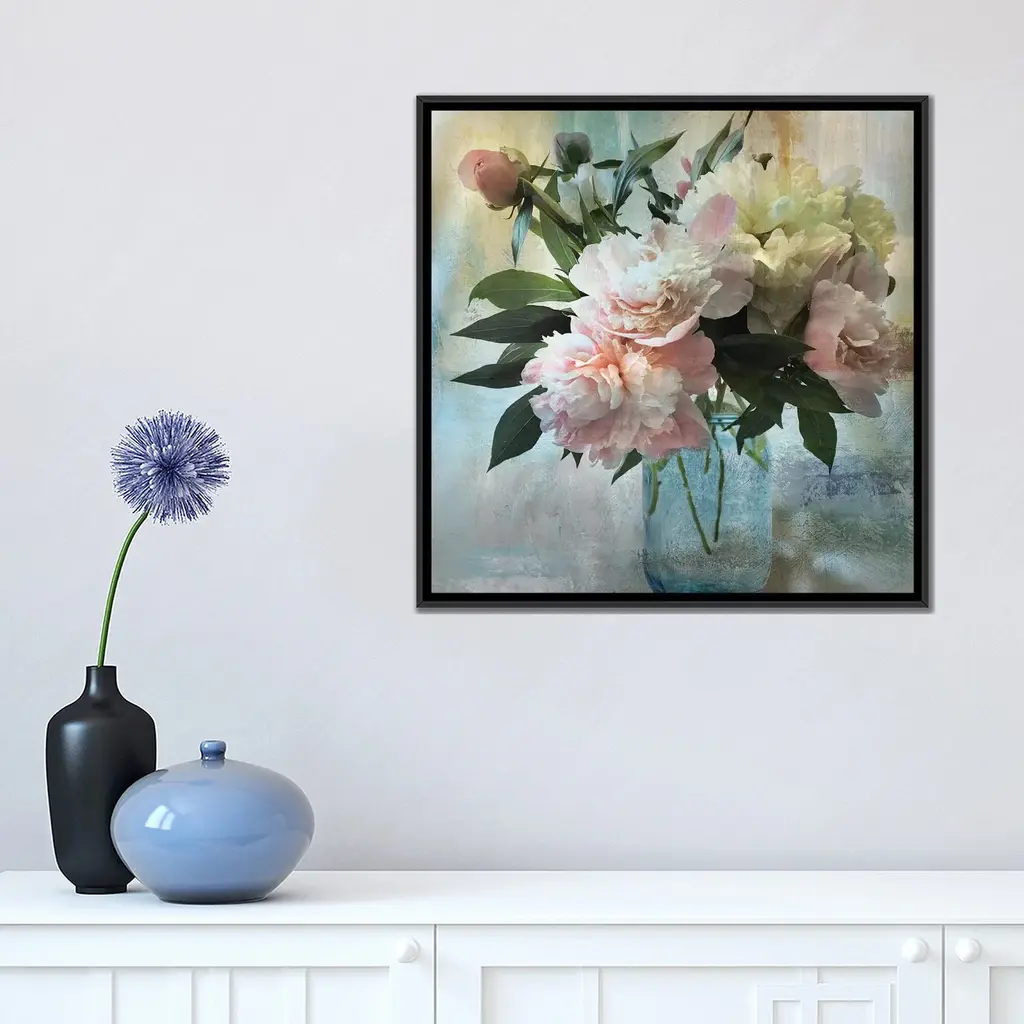 Icanvas "Peony Bouquet Ii" By Nan Framed Canvas Print - 18x18 - Black