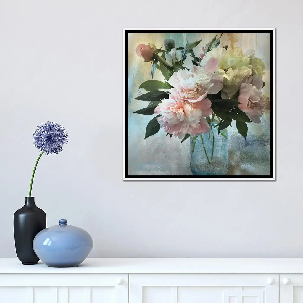 Icanvas "Peony Bouquet Ii" By Nan Framed Canvas Print - 18x18 - White