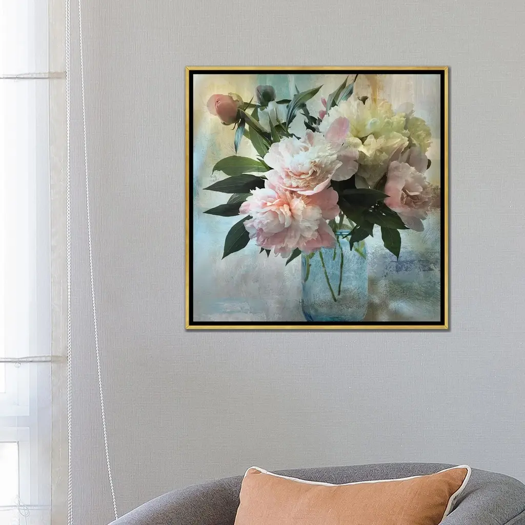 Icanvas "Peony Bouquet Ii" By Nan Framed Canvas Print - 26x26 - Gold