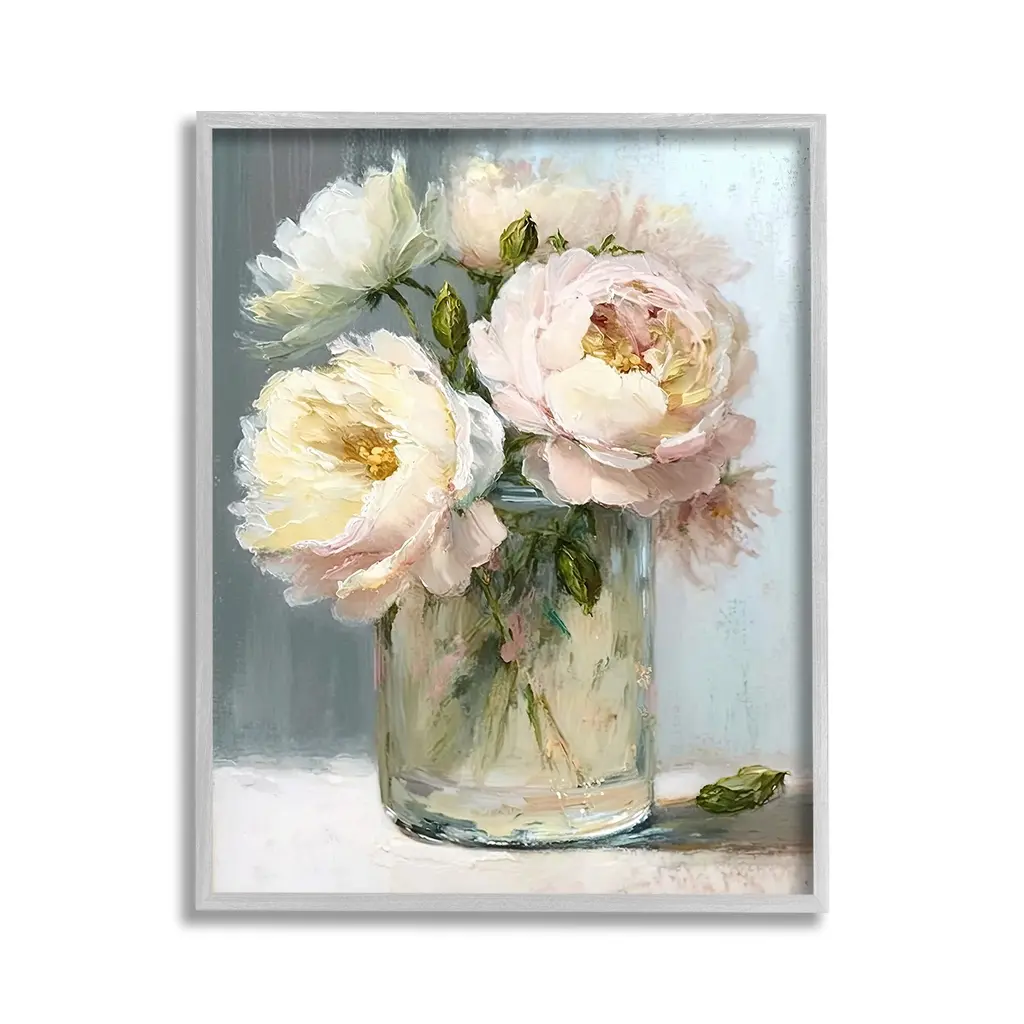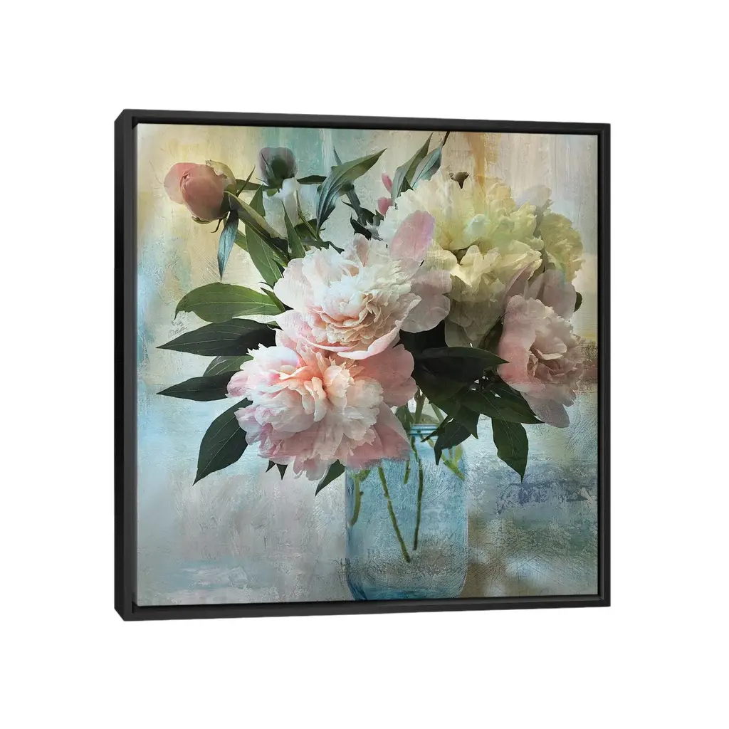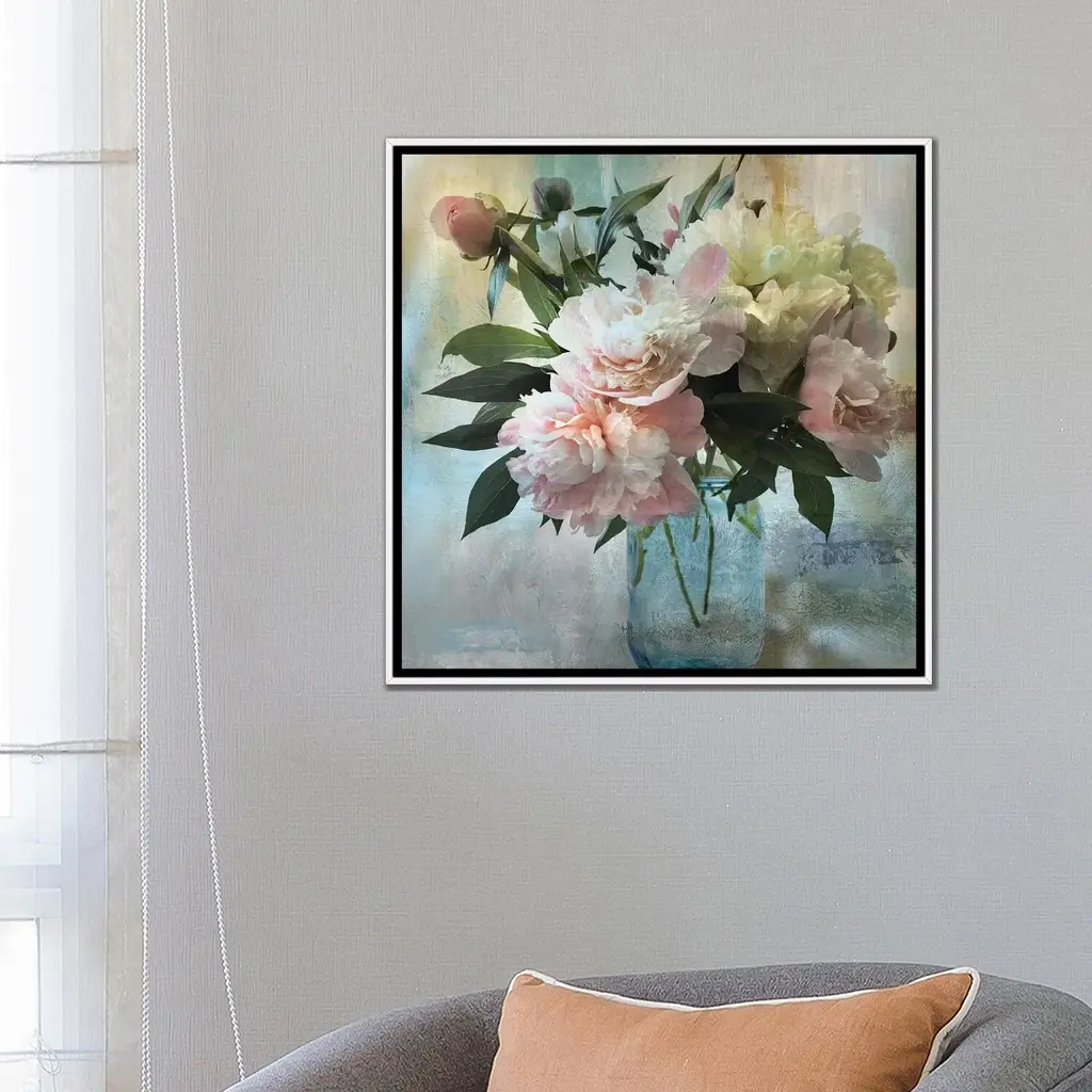 Icanvas "Peony Bouquet Ii" By Nan Framed Canvas Print - 26x26 - White