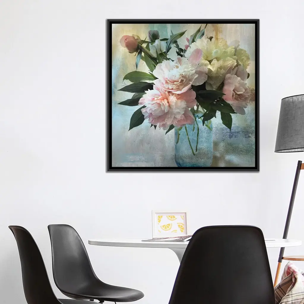 Icanvas "Peony Bouquet Ii" By Nan Framed Canvas Print - 37x37 - Black
