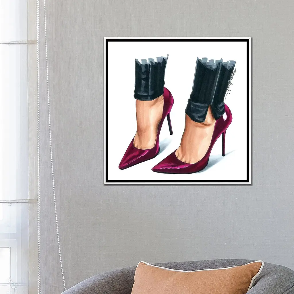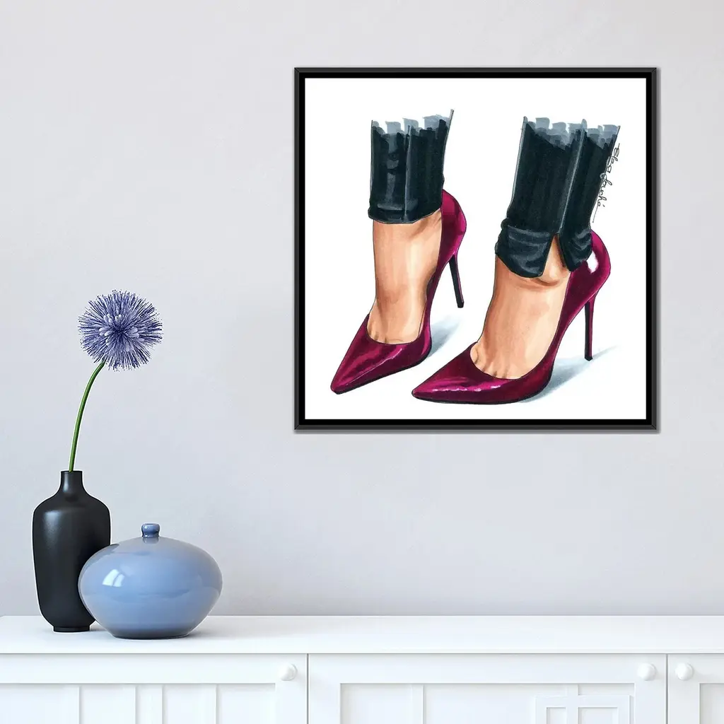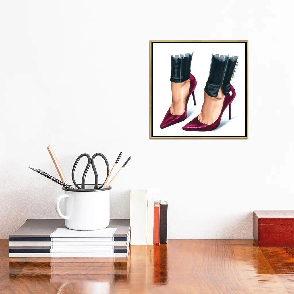 Icanvas "Peony Heels" By Elza Fouche Framed Canvas Print - Gold - 26x26