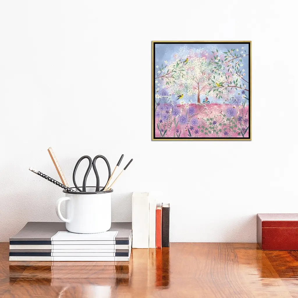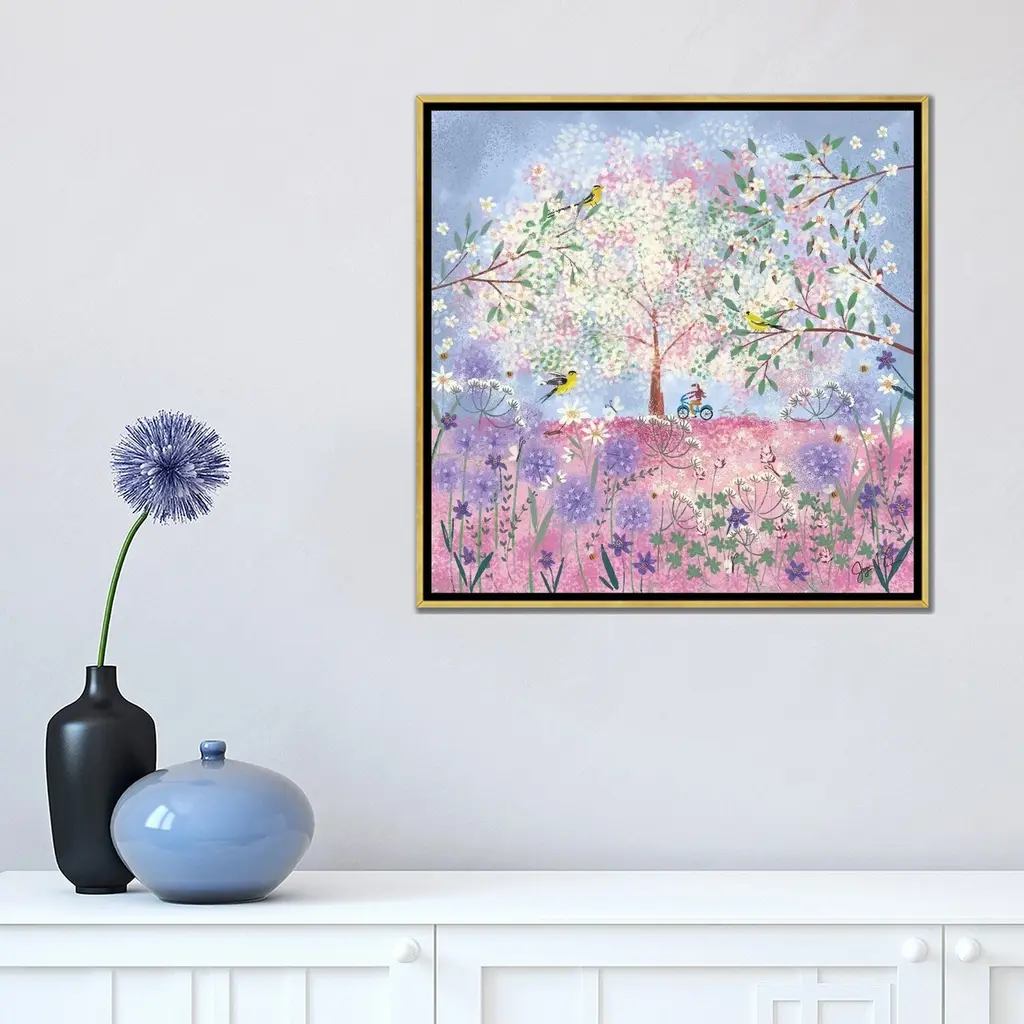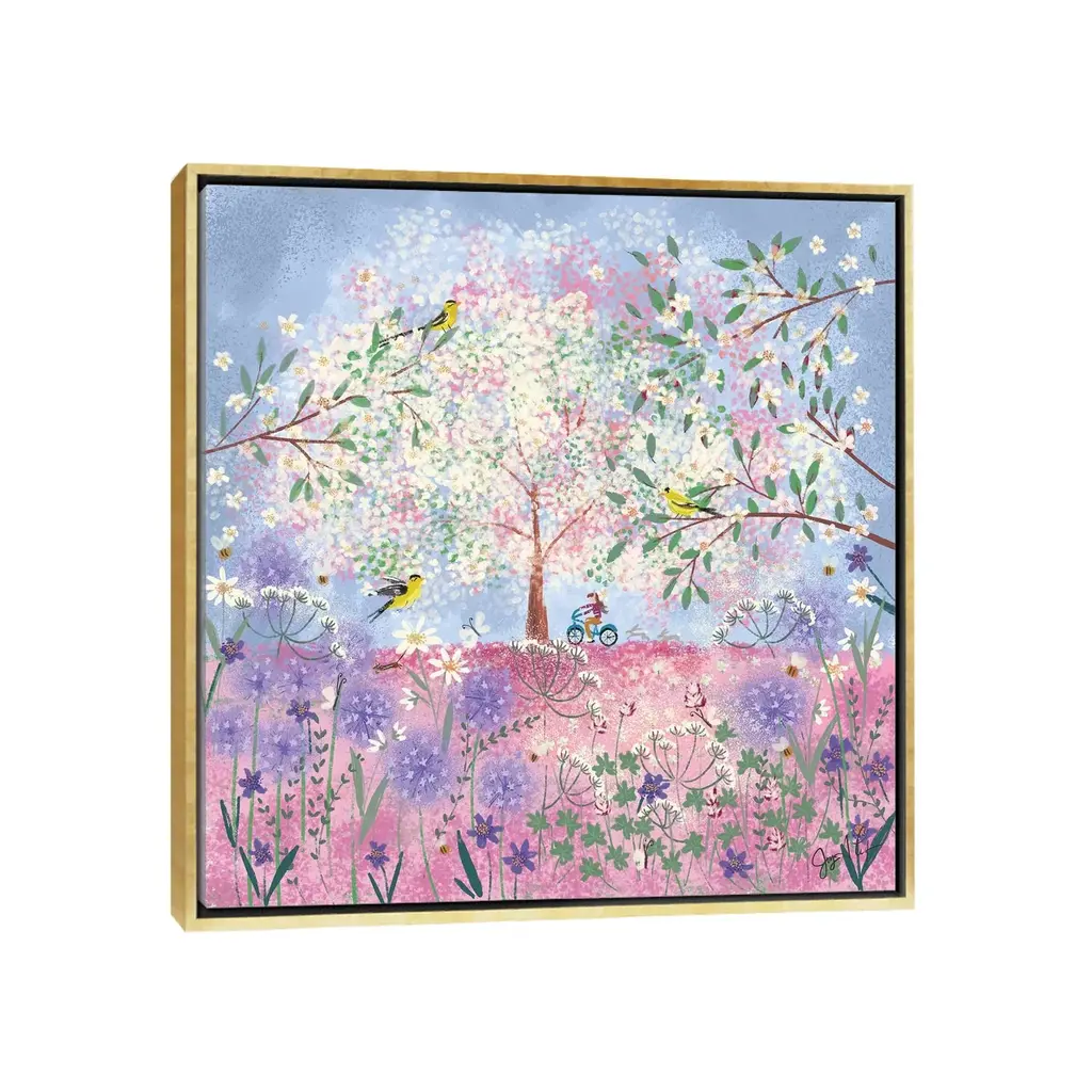 Icanvas "Periwinkle Spring Flora" By Joy Laforme Framed Canvas Print - Gold - 18x18