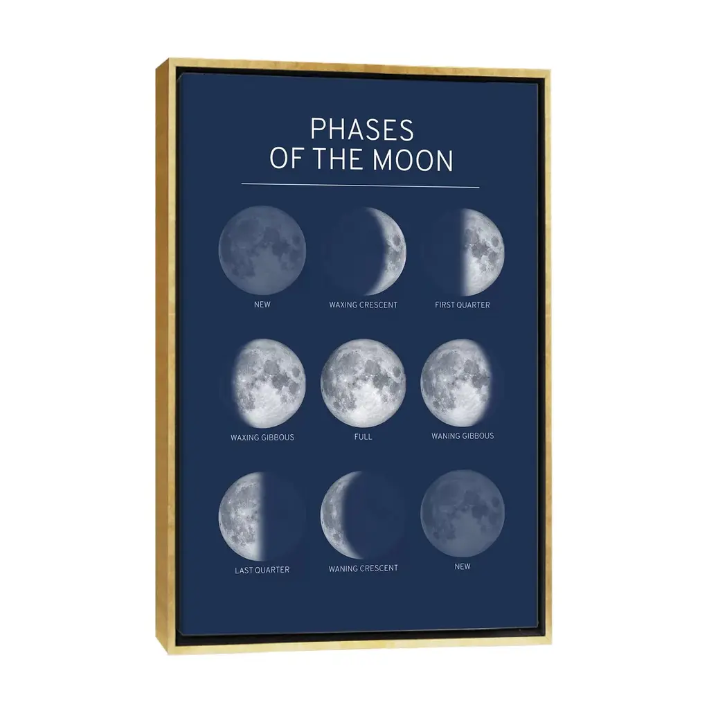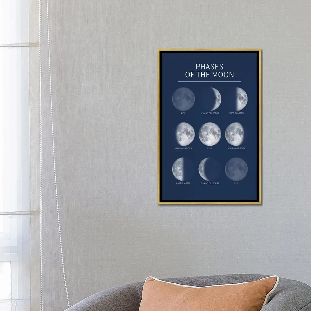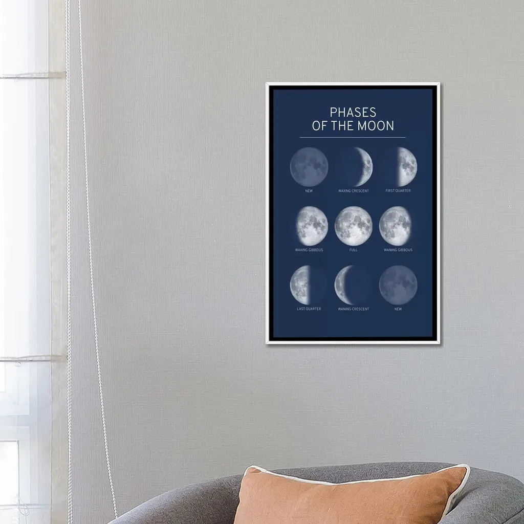 Icanvas "Phases Of The Moon Chart - Blue" By Getyournerdon Framed Canvas Print - White - 40x26