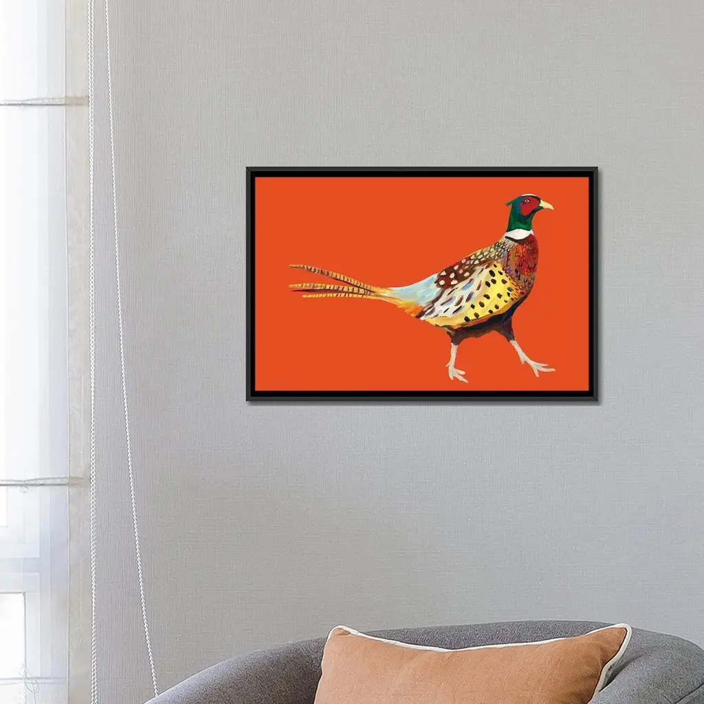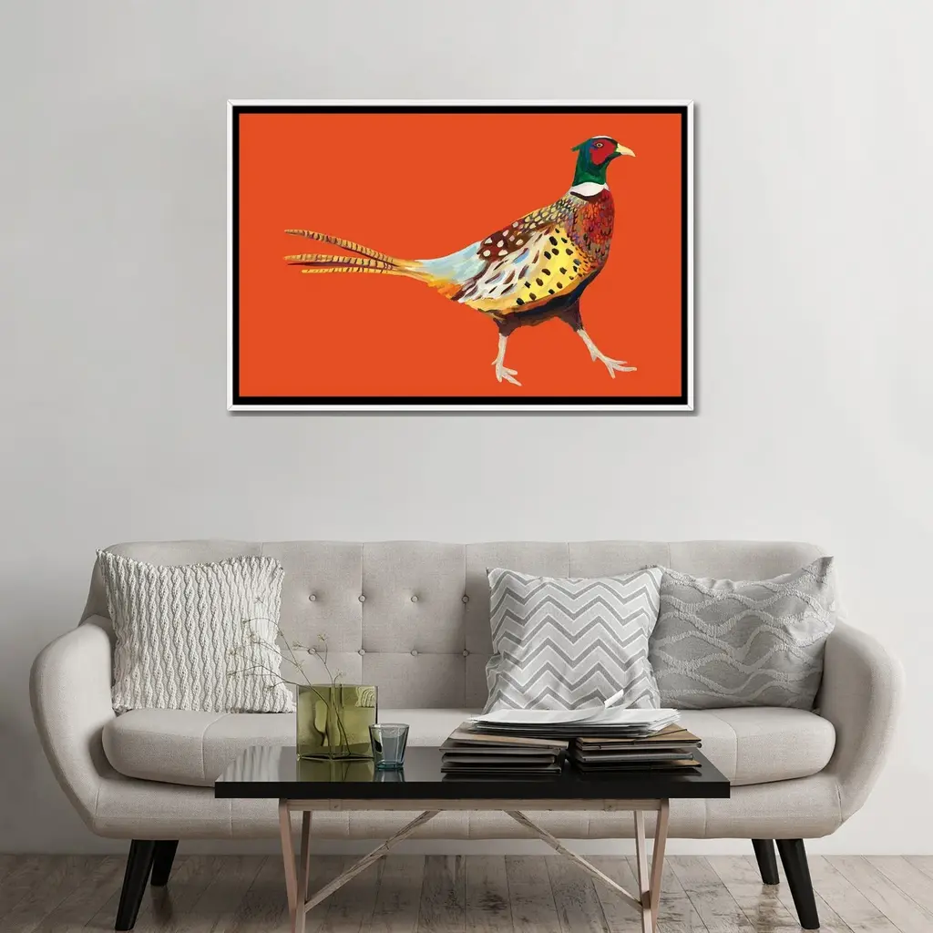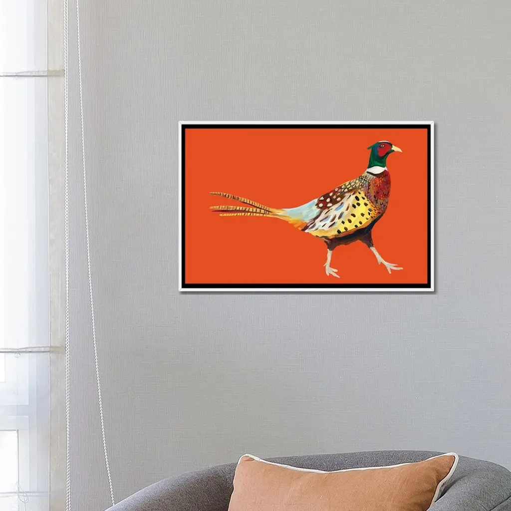 Icanvas "Pheasant On Orange" By Alice Straker Framed Canvas Print - White - 32x48