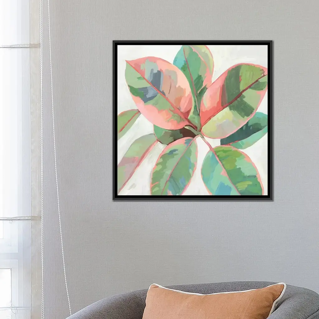 Icanvas "Pink Ficus Ii" By Asia Jensen Framed Canvas Print - Gold - 26x26