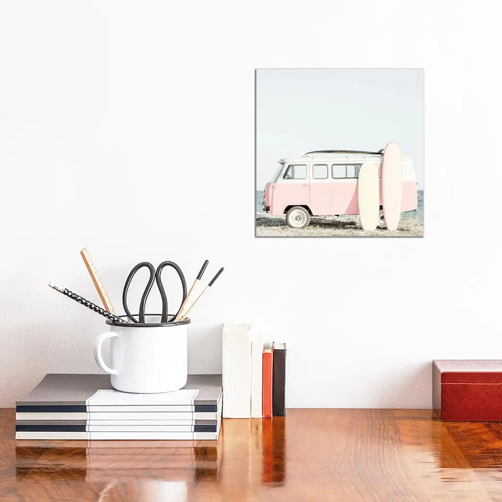 Icanvas "Pink Kombi Van With Surfboards" By Tiny Treasure Prints Canvas Print - 12x12x1.5