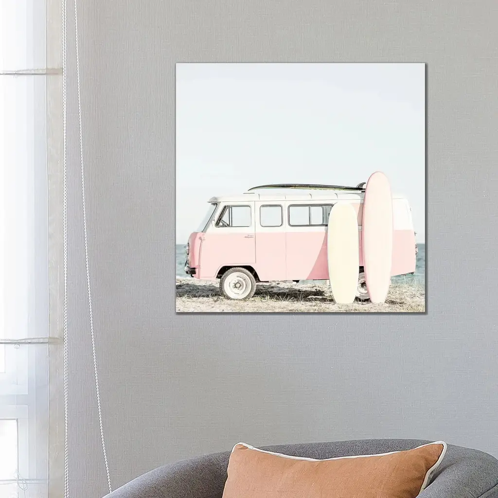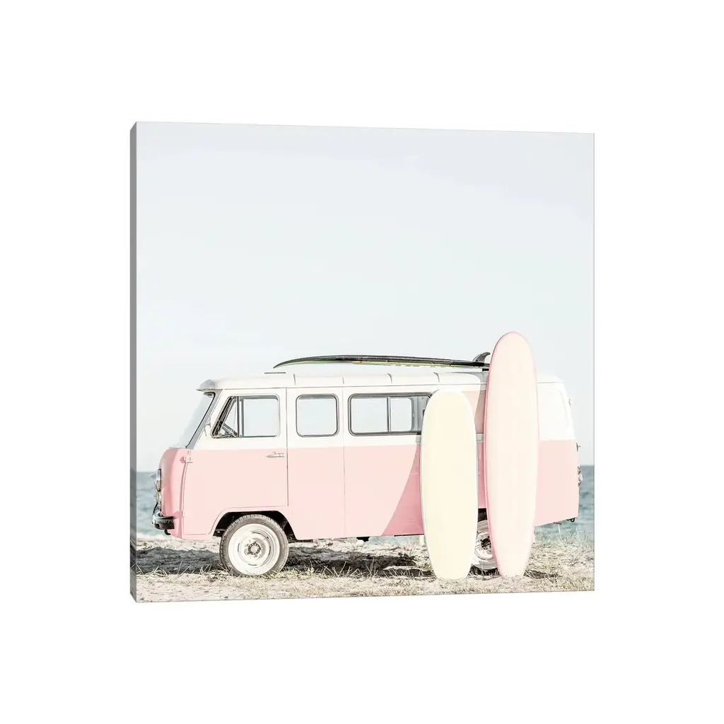 Icanvas "Pink Kombi Van With Surfboards" By Tiny Treasure Prints Canvas Print - 26x26x1.5