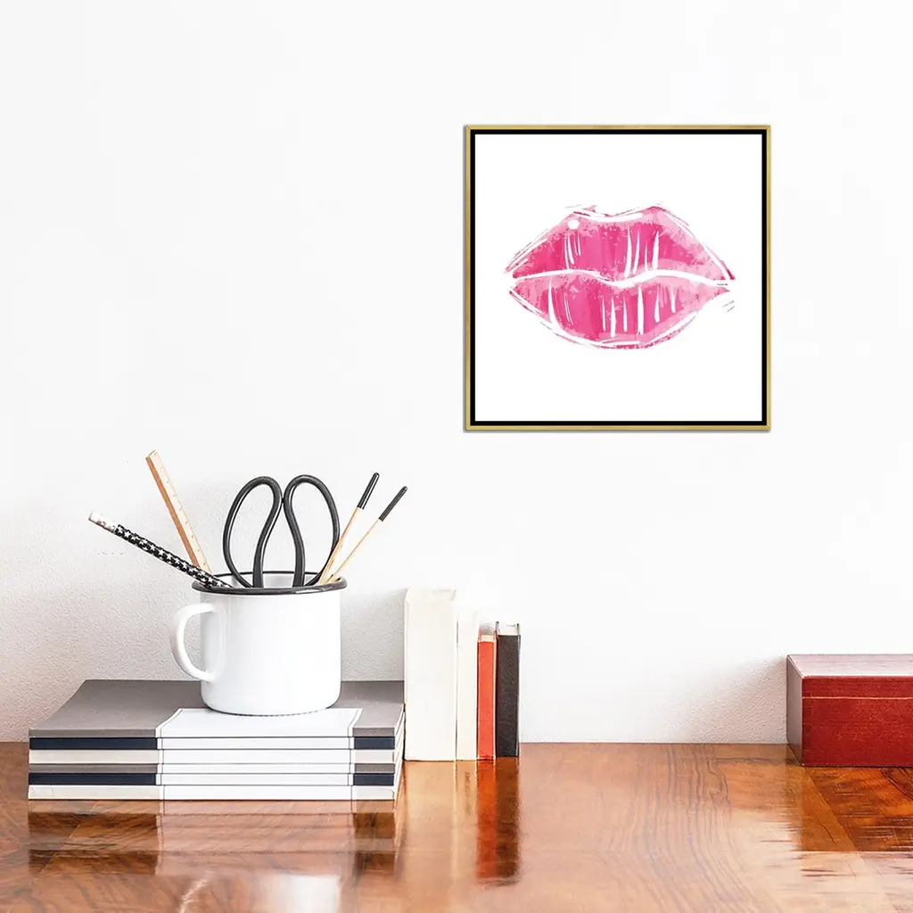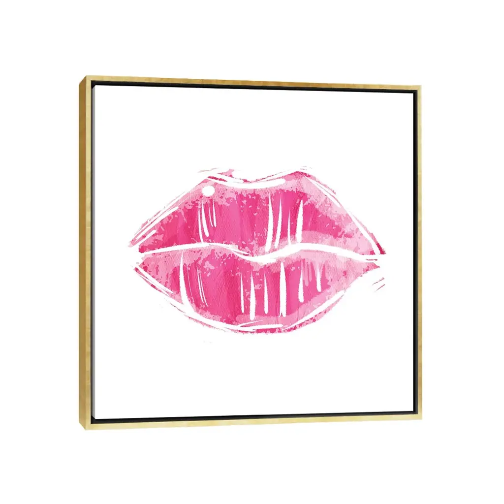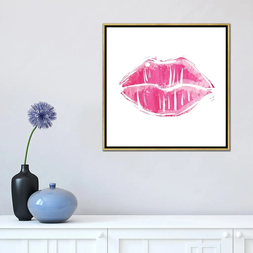Icanvas "Pink Lips" By Milli Villa Framed - Gold - 26x26