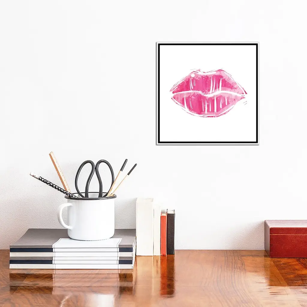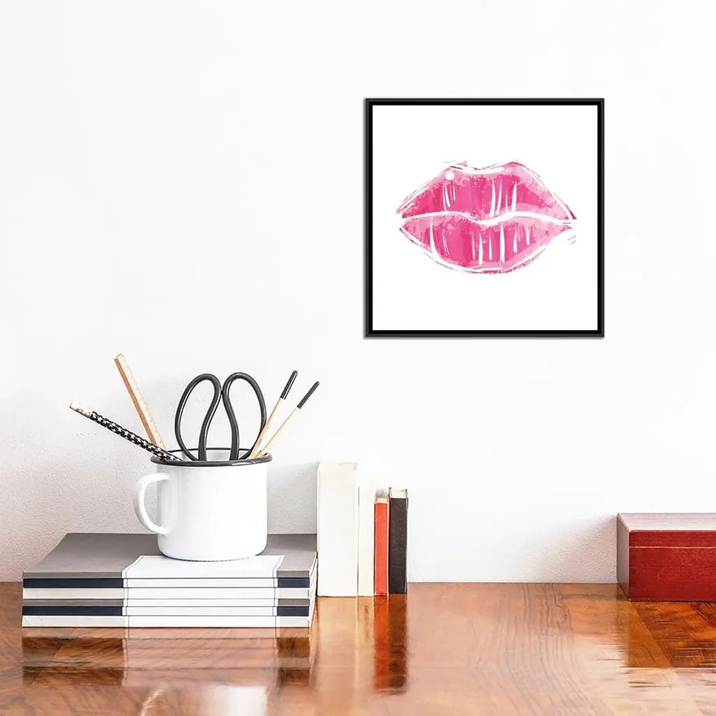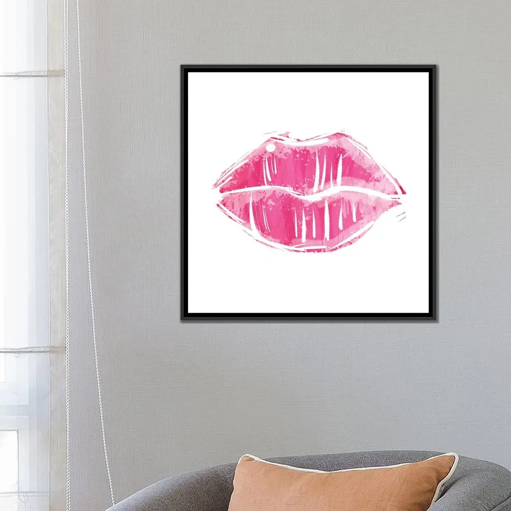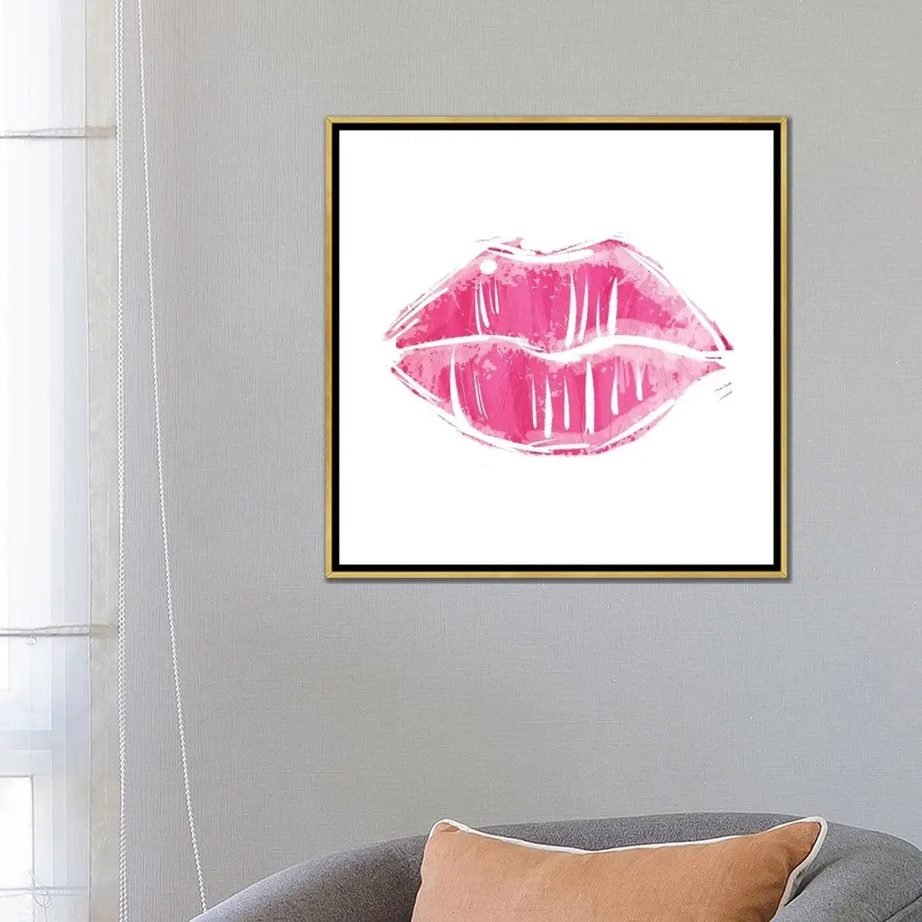 Icanvas "Pink Lips" By Milli Villa Framed - Gold - 26x26