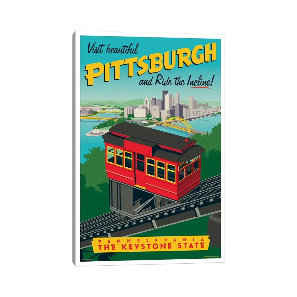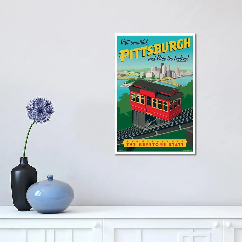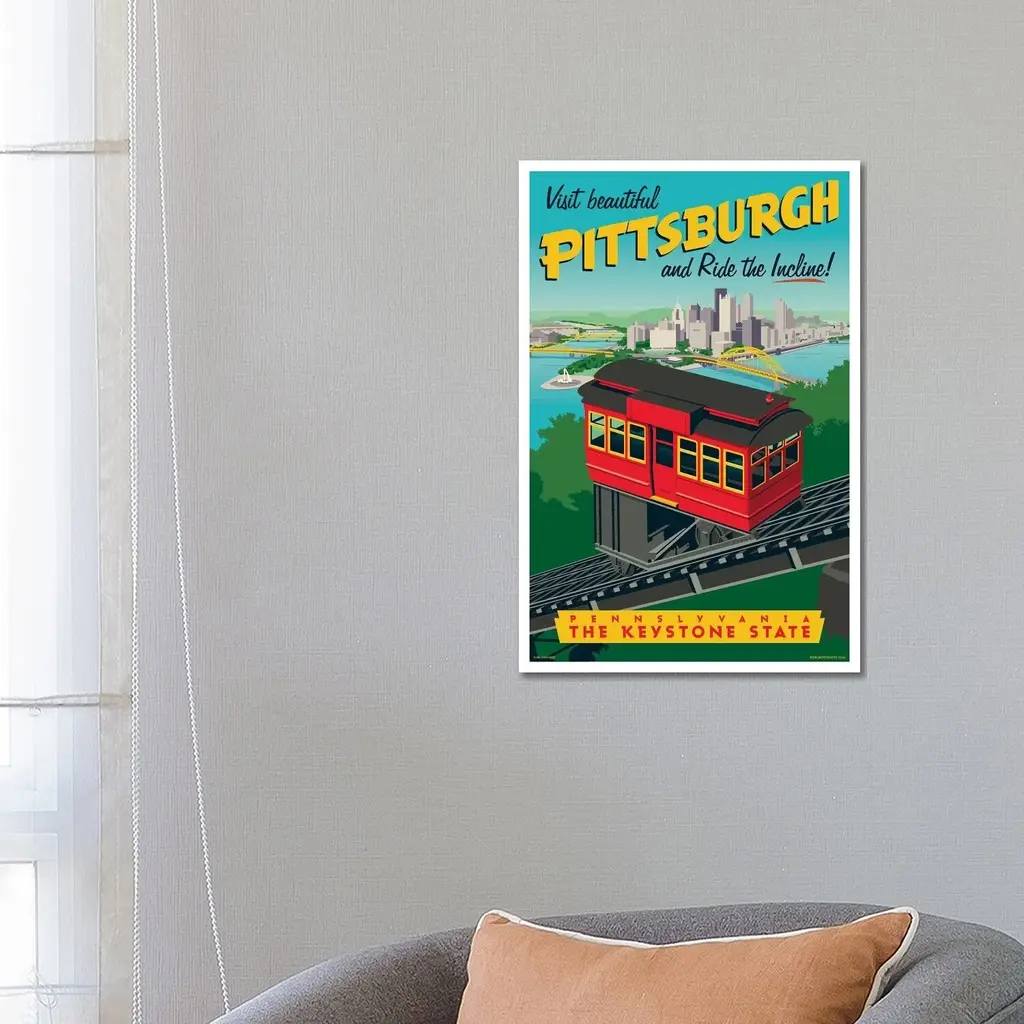 Icanvas "Pittsburgh Incline Travel Poster" By Jim Zahniser Canvas Print - 12x8x0.75