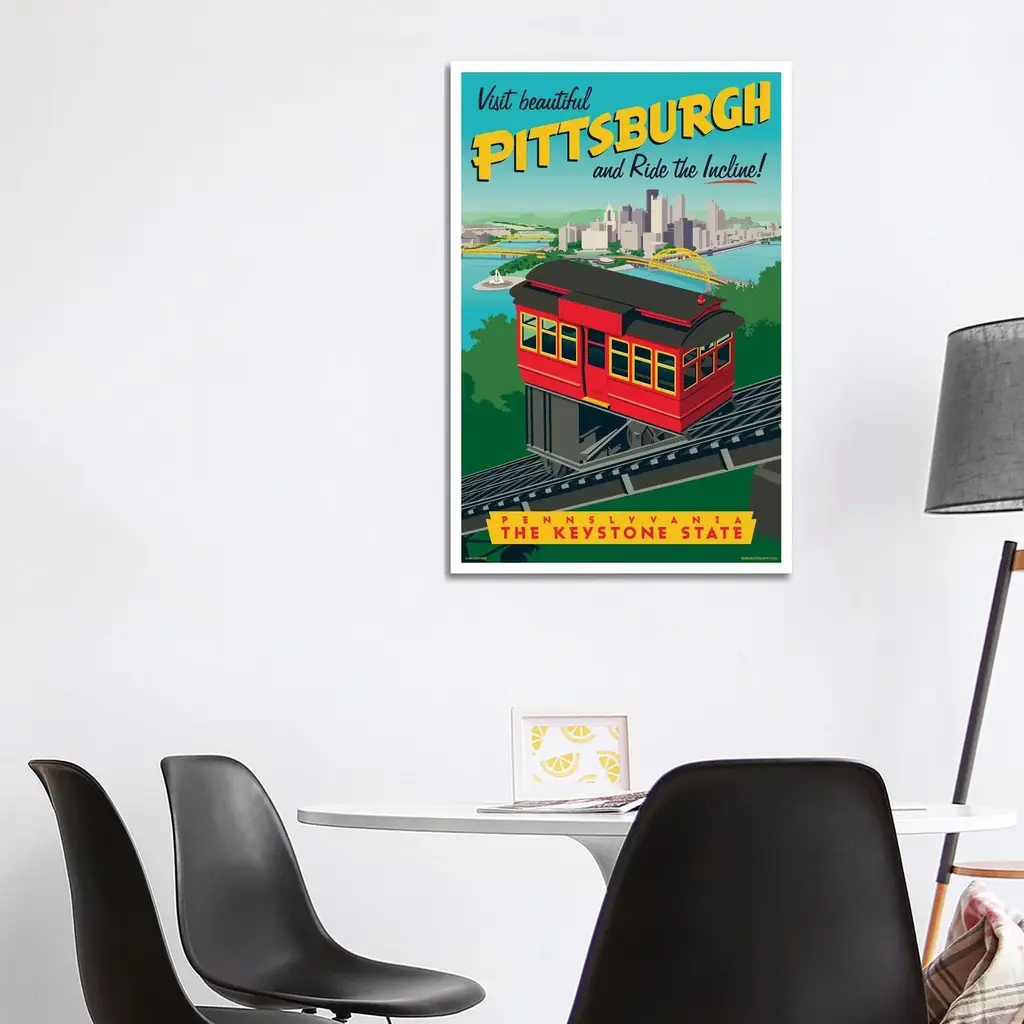 Icanvas "Pittsburgh Incline Travel Poster" By Jim Zahniser Canvas Print - 18x12x1.5
