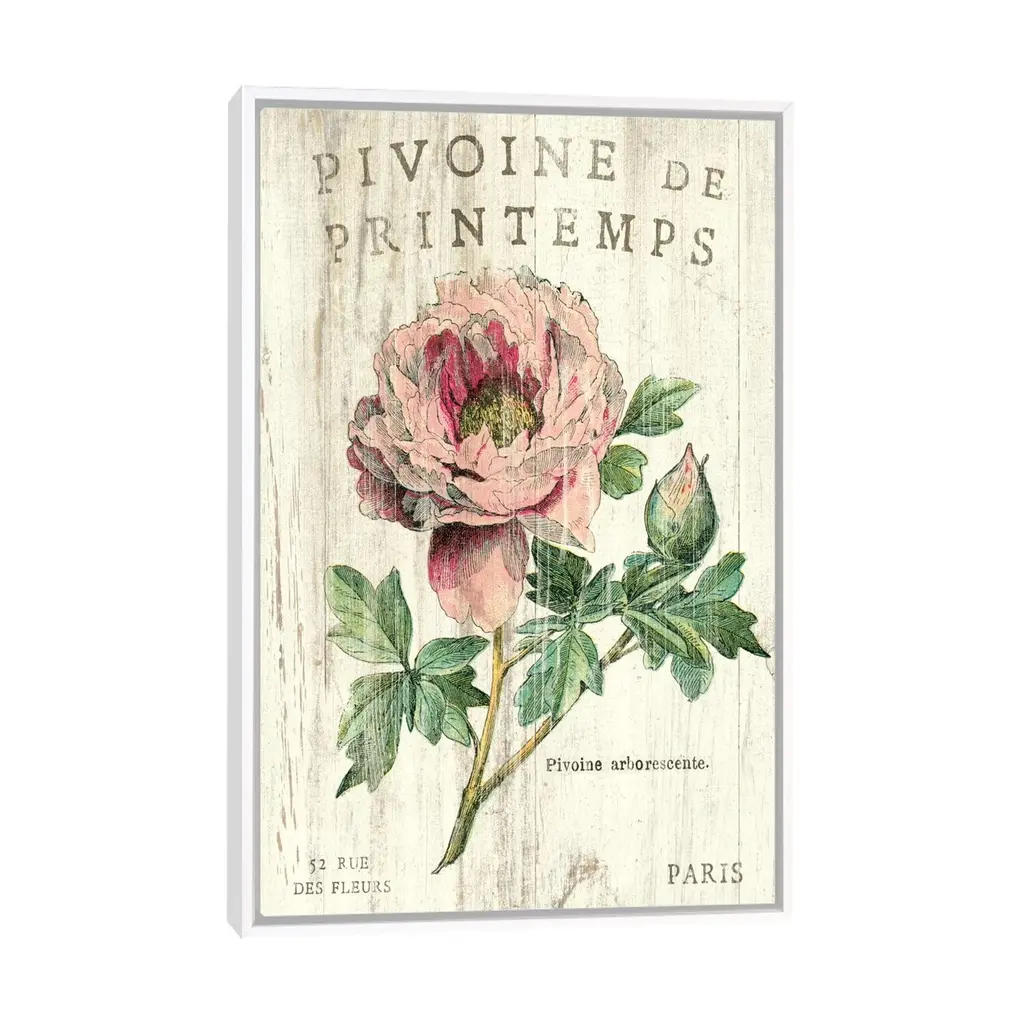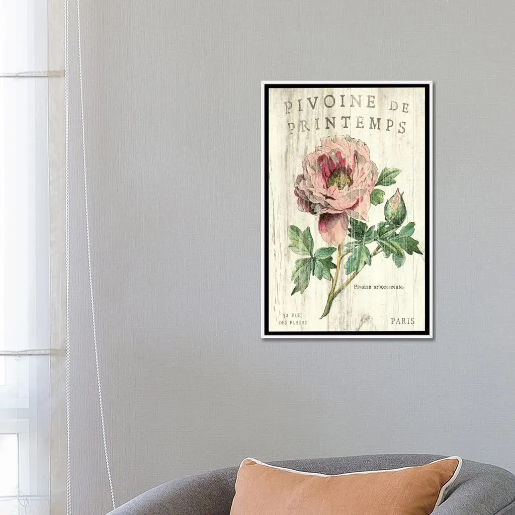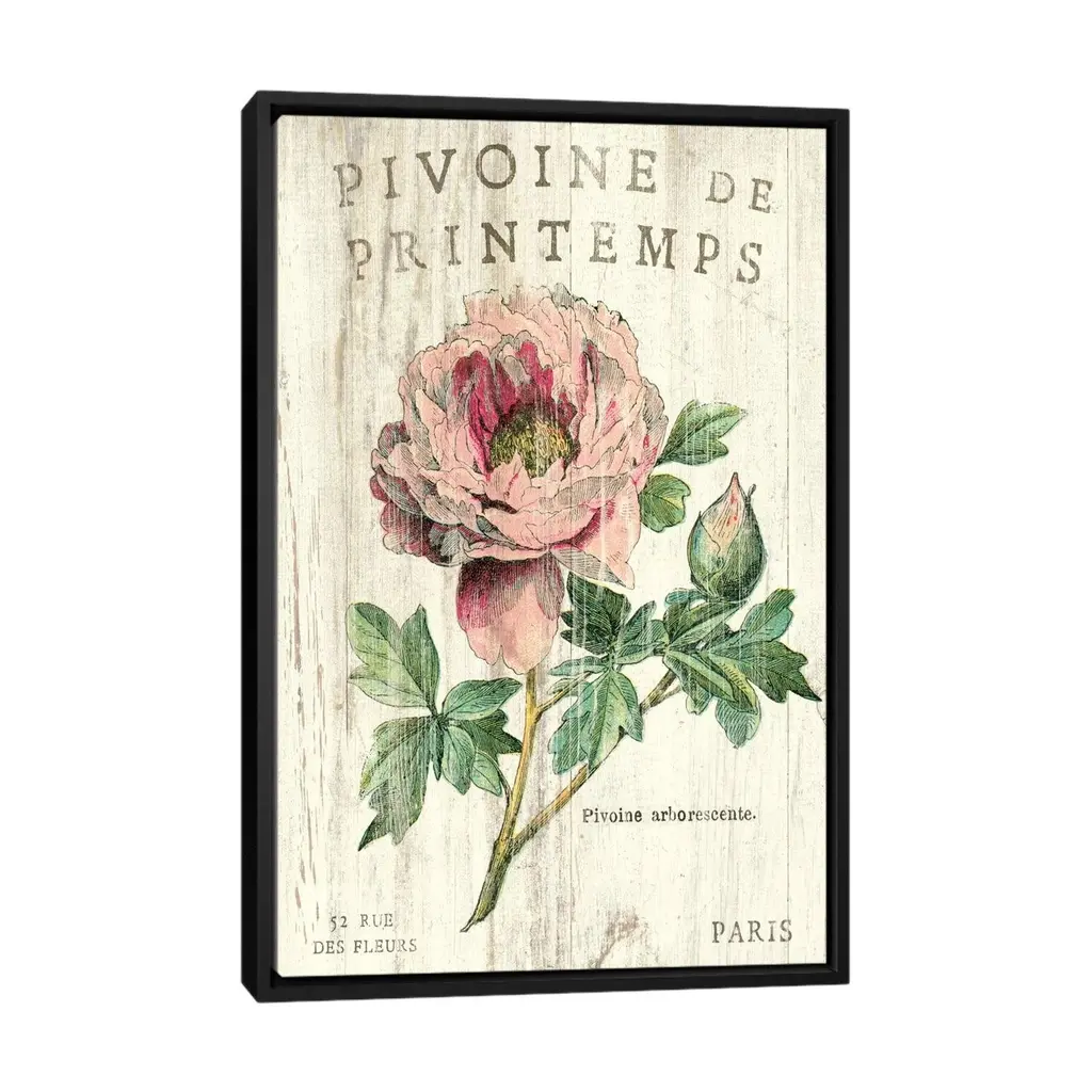 Icanvas "Pivoine De Printemps " By Sue Schlabach Framed Canvas Print - Black - 26x18