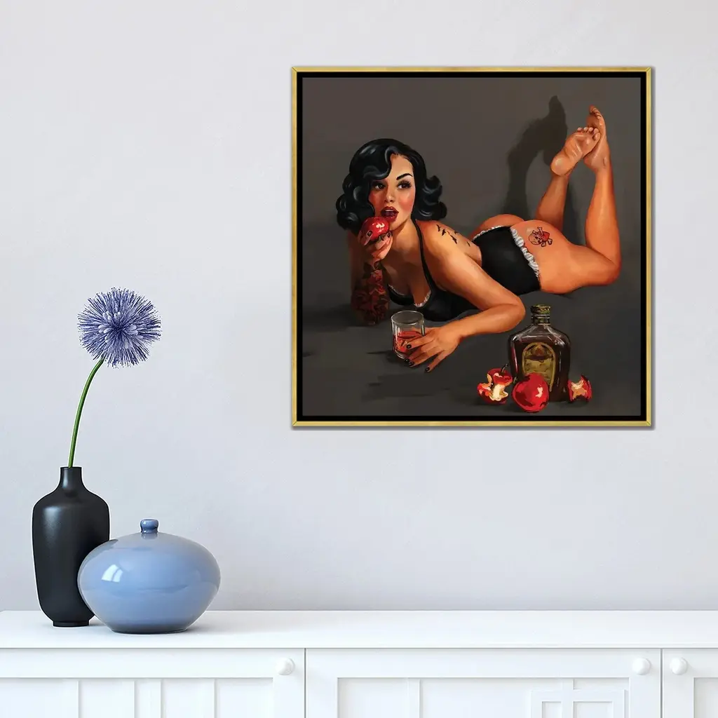 Icanvas "Poison Apple Pin Up" By The Whiskey Ginger Framed Canvas Print - 18x18 - Gold