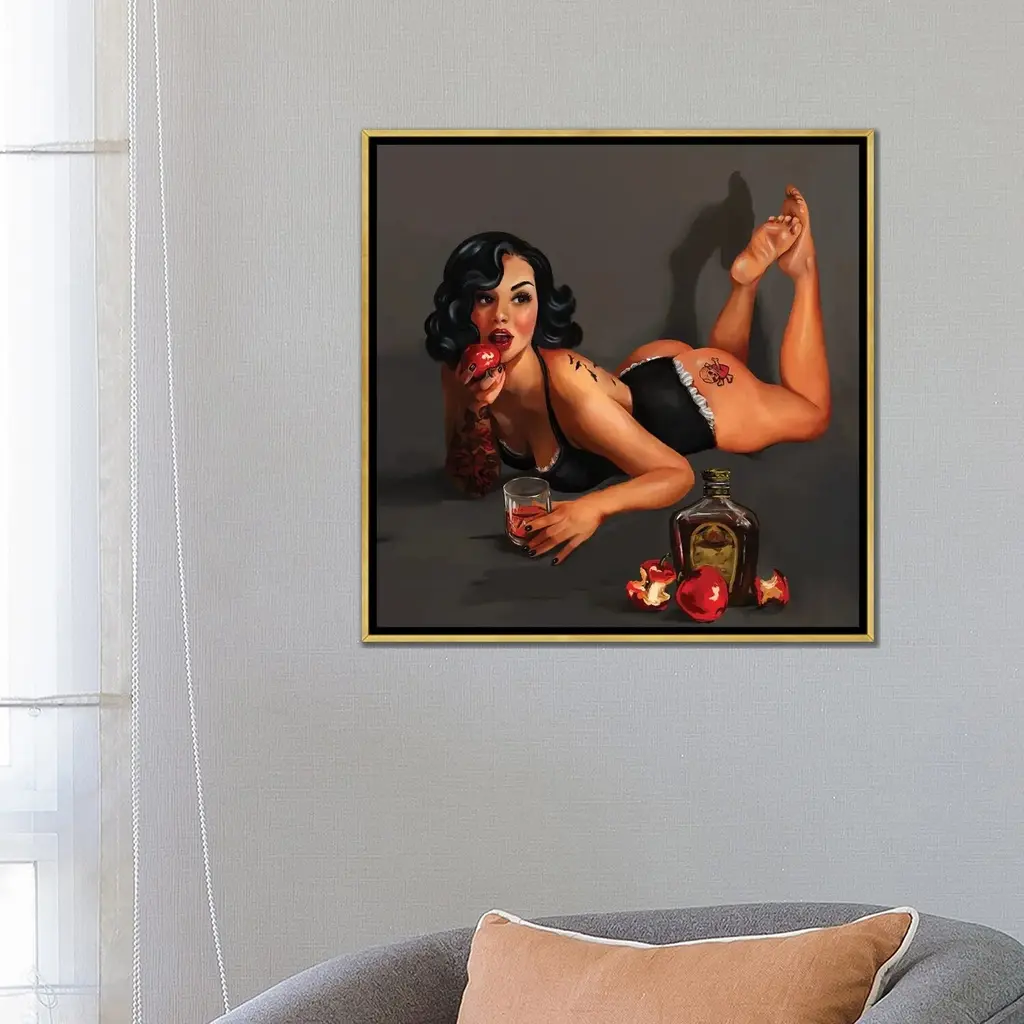 Icanvas "Poison Apple Pin Up" By The Whiskey Ginger Framed Canvas Print - 26x26 - Gold