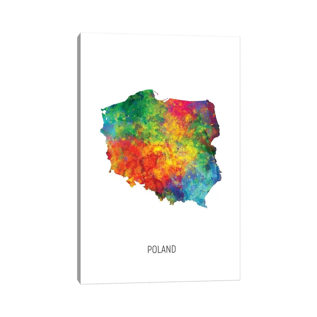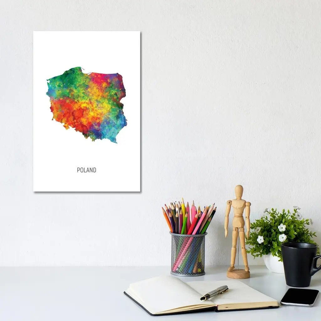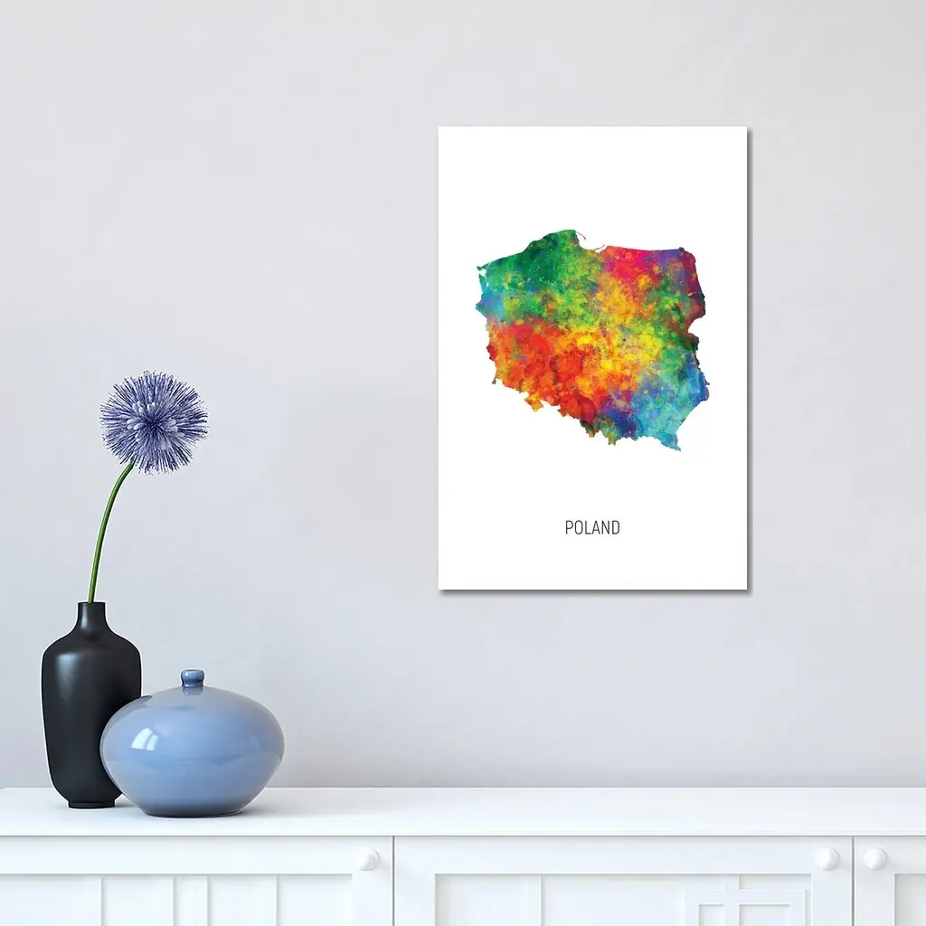 Icanvas "Poland Map" By Michael Tompsett Canvas Print - 48x32x1.5