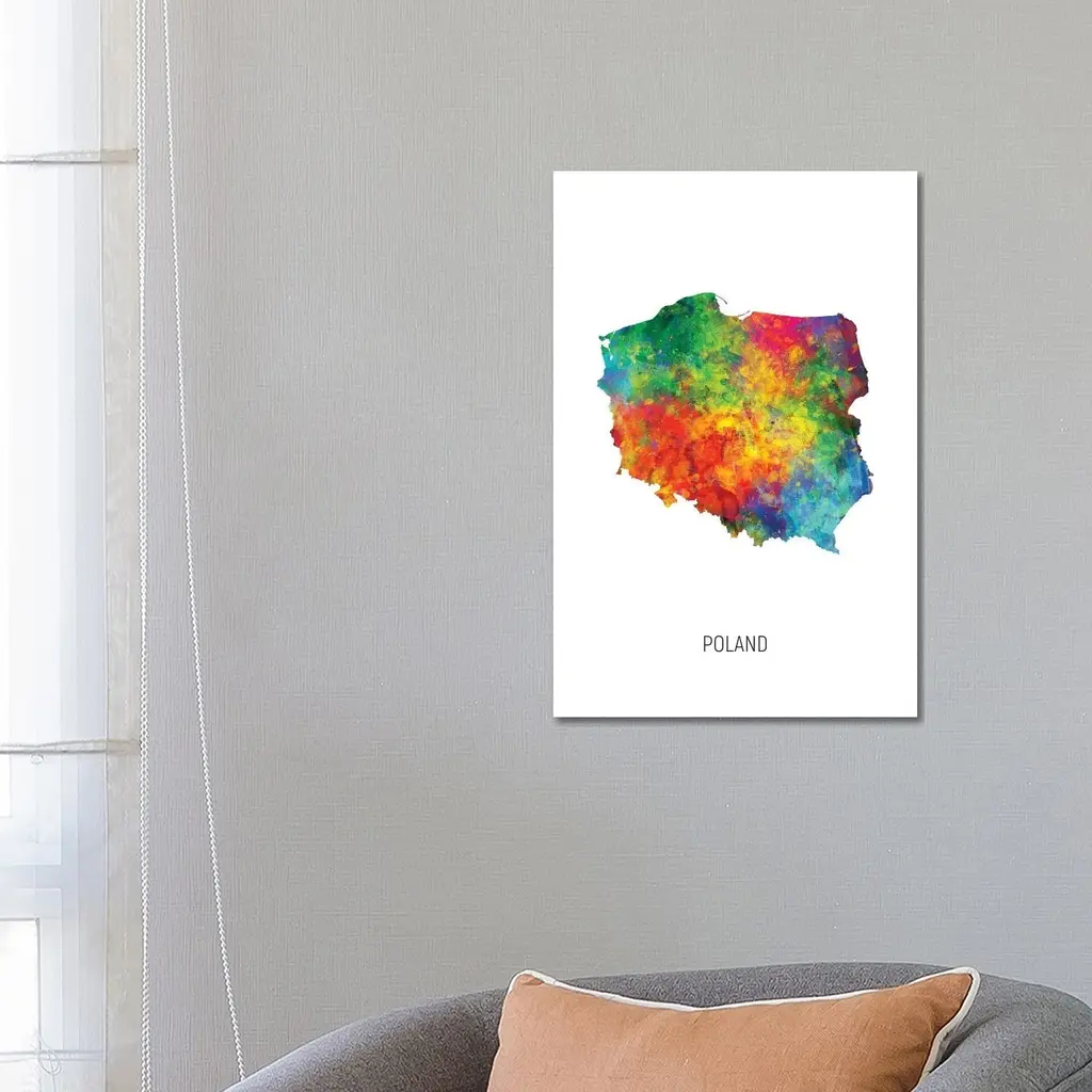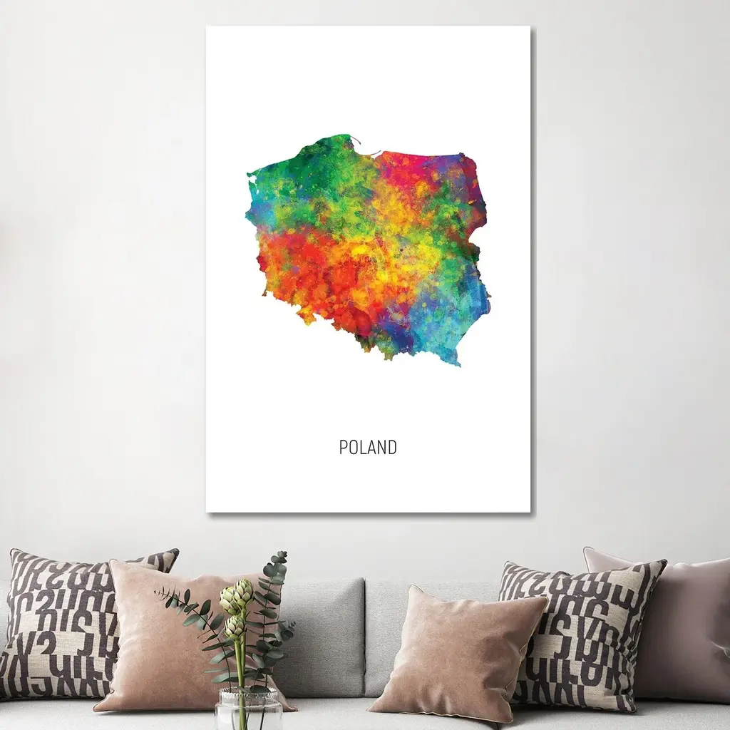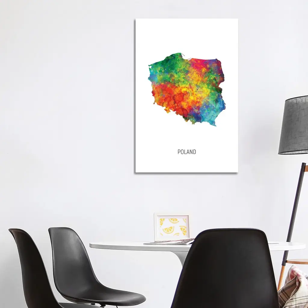 Icanvas "Poland Map" By Michael Tompsett Canvas Print - 48x32x1.5