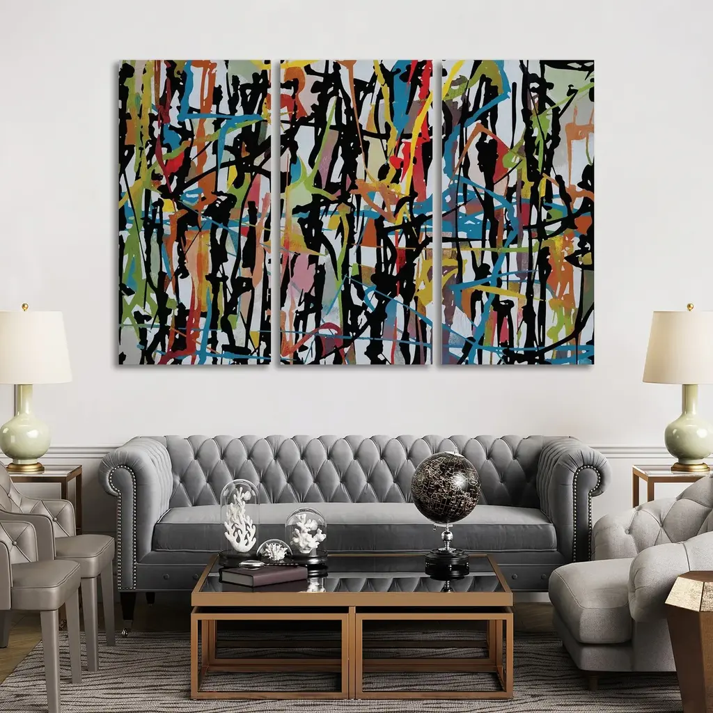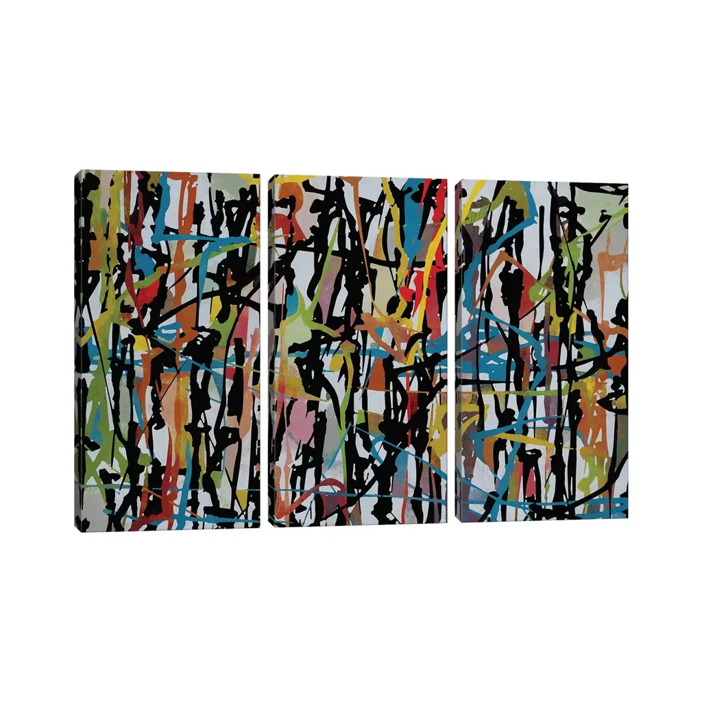 Icanvas "Pollock Wink Xv" By Angel Estevez 3-Piece Canvas Wall Art Set - 40x60x1.5