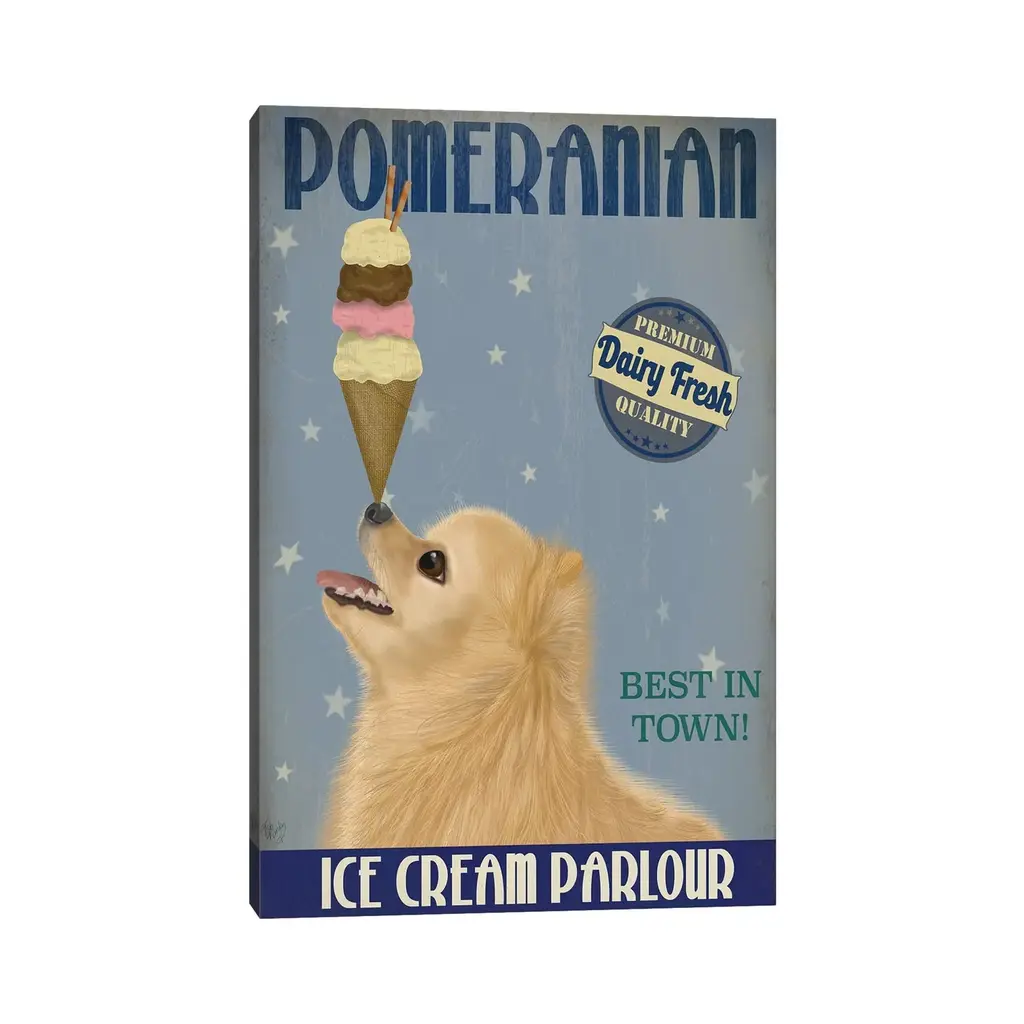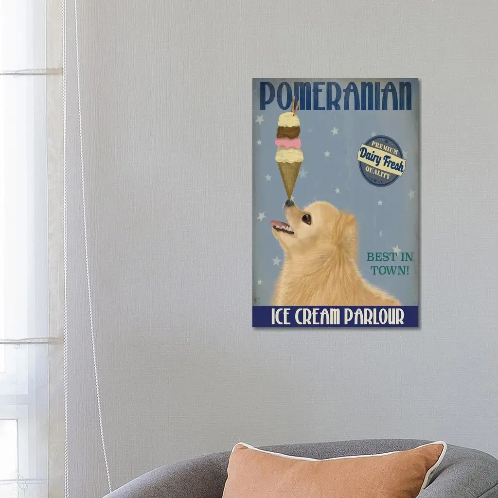 Icanvas "Pomeranian Ice Cream" By Fab Funky Canvas Print - 40x26x1.5