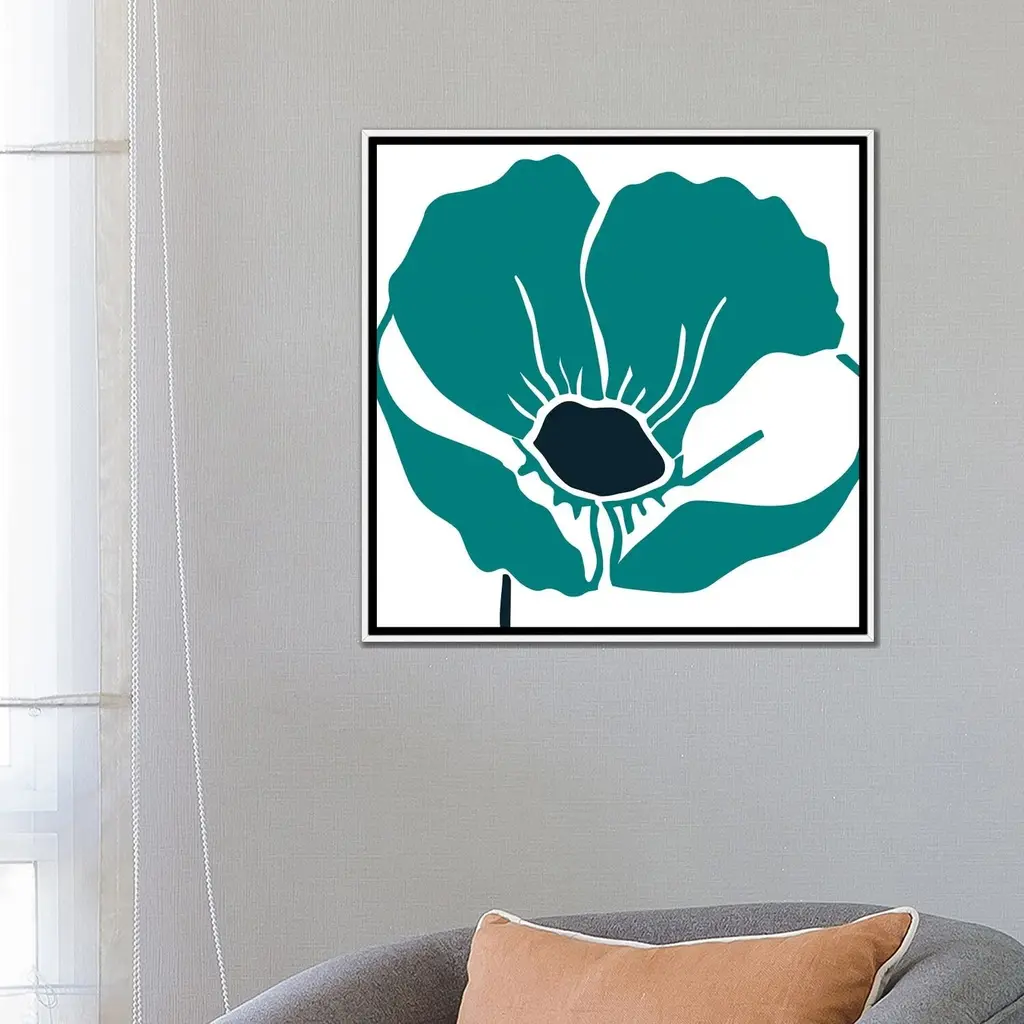 Icanvas "Pop Art Floral V" By Wild Apple Portfolio Framed Canvas Print - Black - 18x18