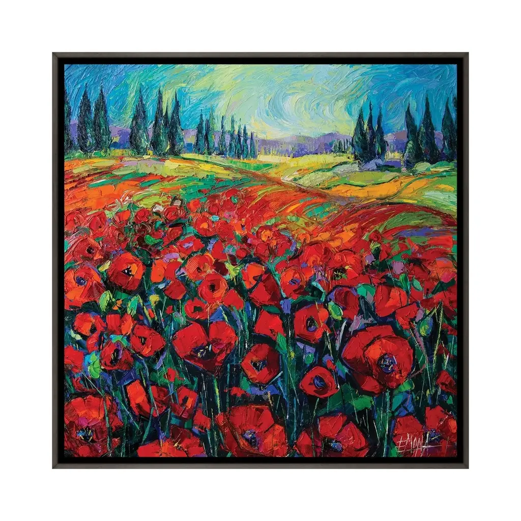 Icanvas "Poppies And Cypresses" By Mona Edulesco Framed - Charcoal - 12x12