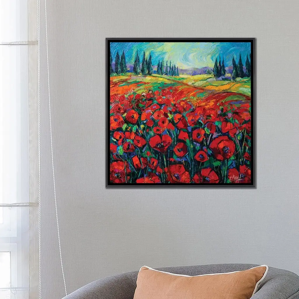 Icanvas "Poppies And Cypresses" By Mona Edulesco Framed - Charcoal - 26x26