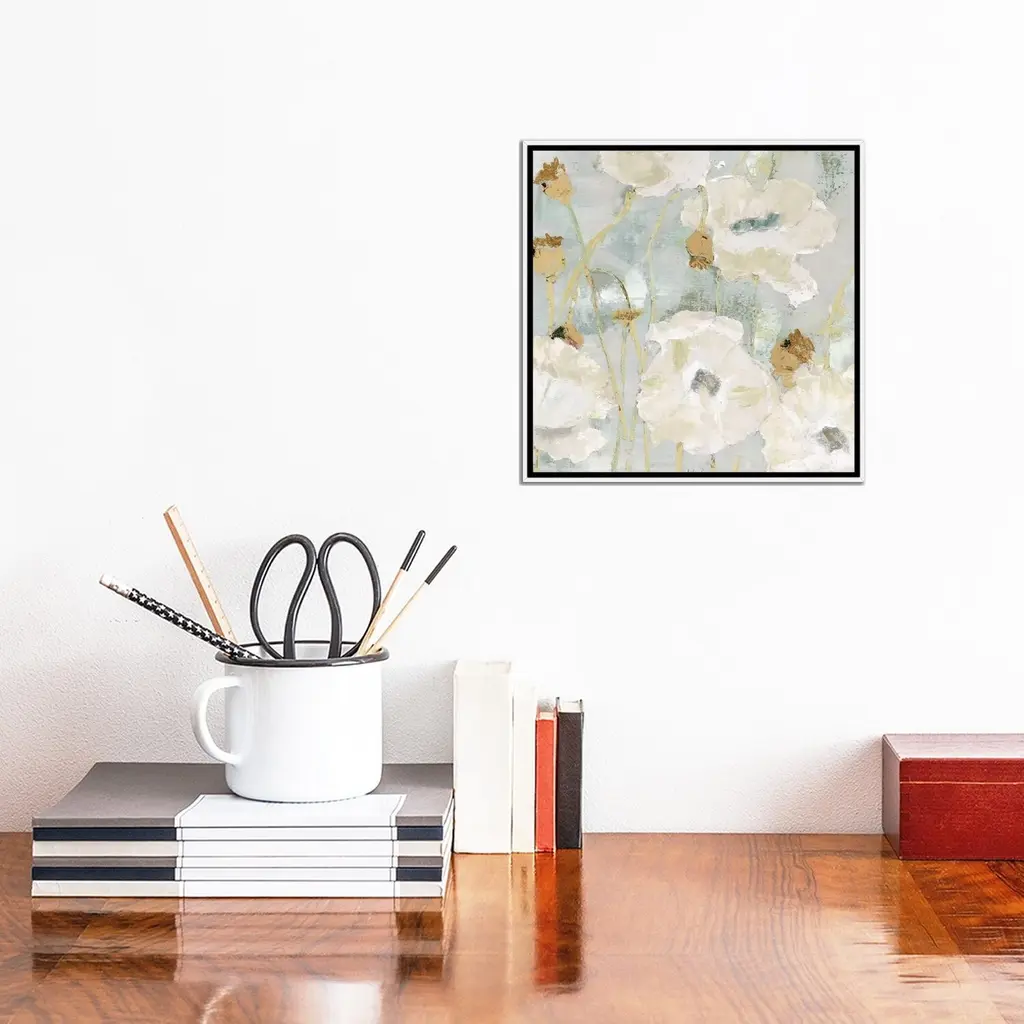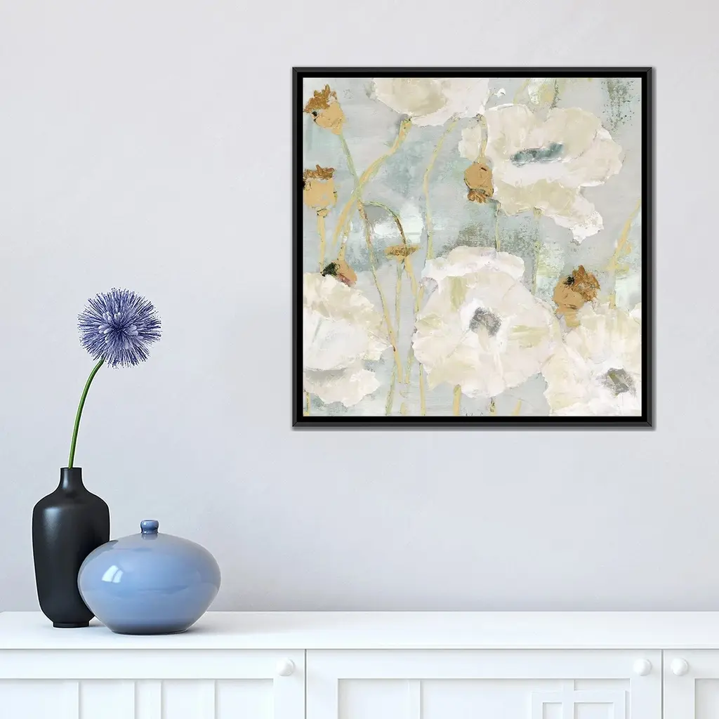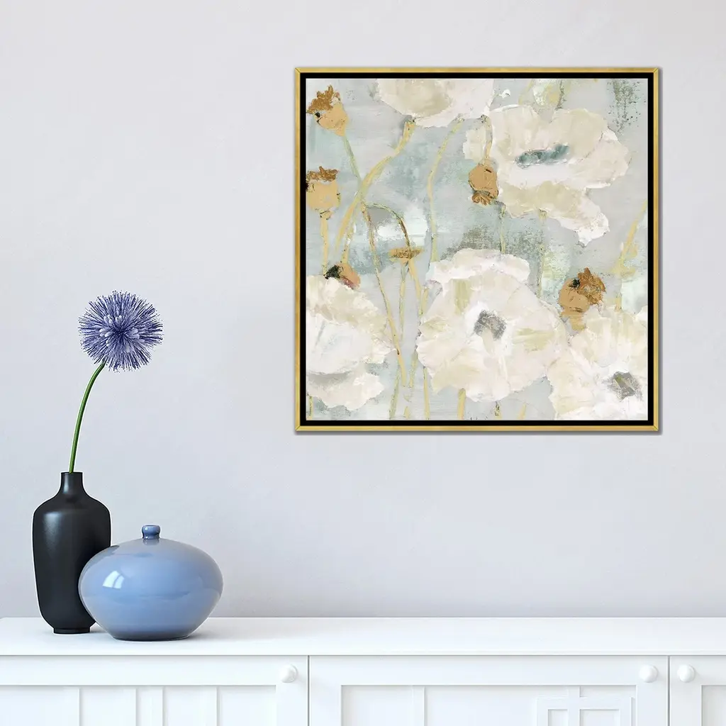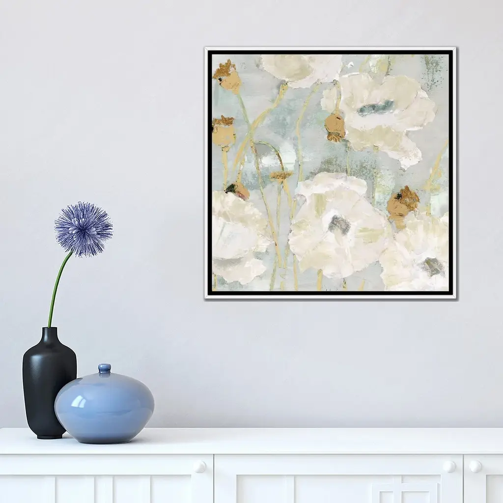Icanvas "Poppies In The Wind Cream Square" By Marie Elaine Cusson Framed Canvas Print - Black - 18x18