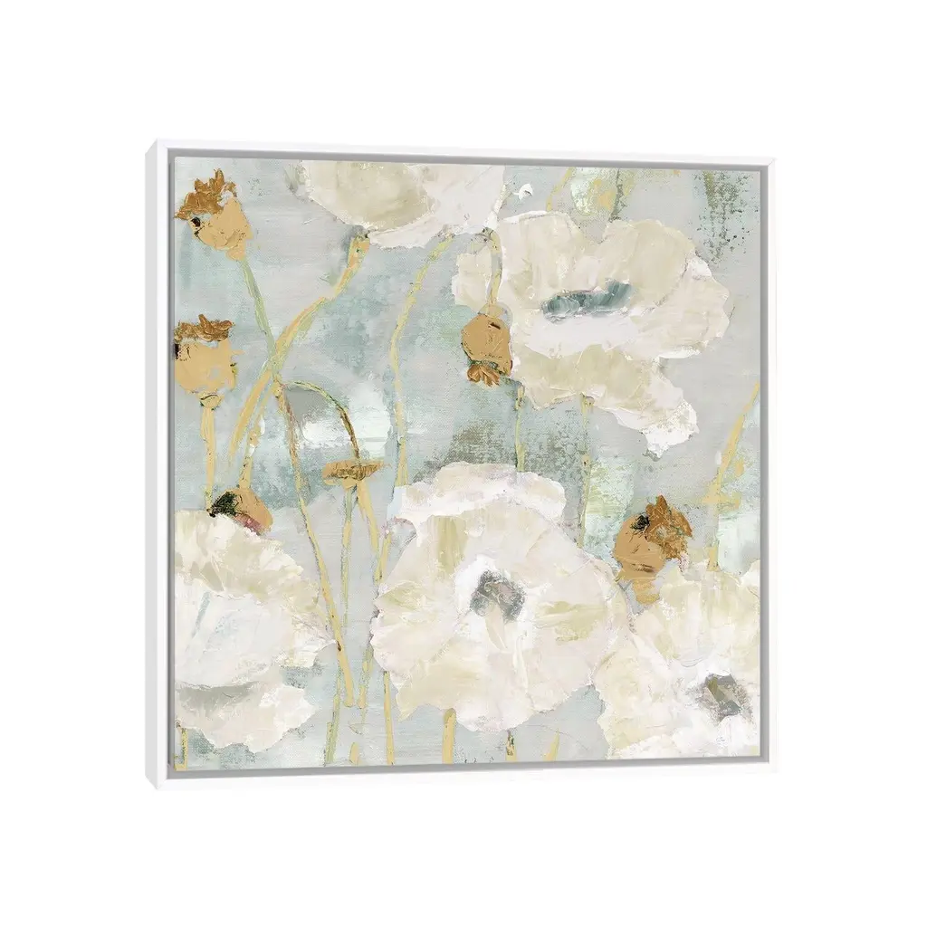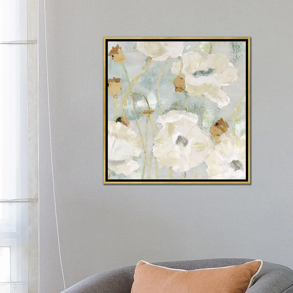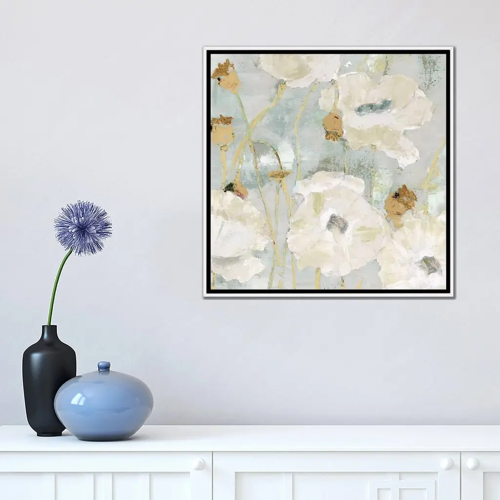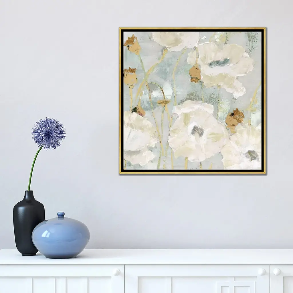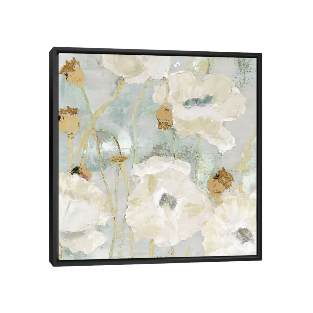 Icanvas "Poppies In The Wind Cream Square" By Marie Elaine Cusson Framed Canvas Print - Black - 37x37