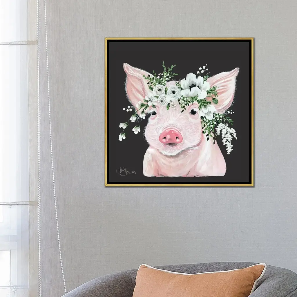 Icanvas "Poppy The Pig" By Hollihocks Art Framed Canvas Print - Black - 26x26