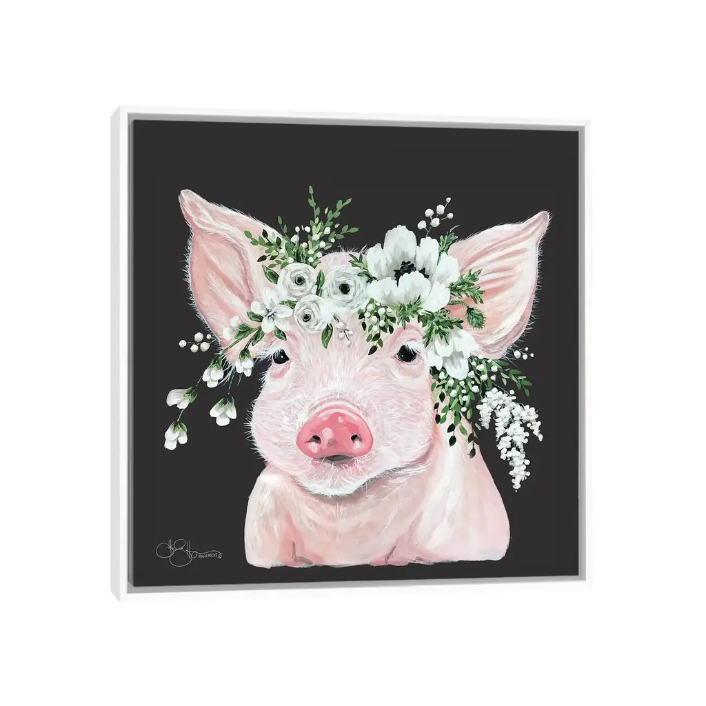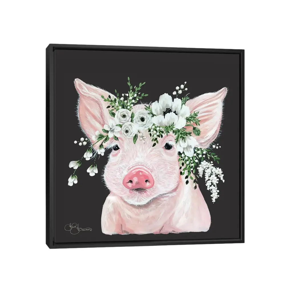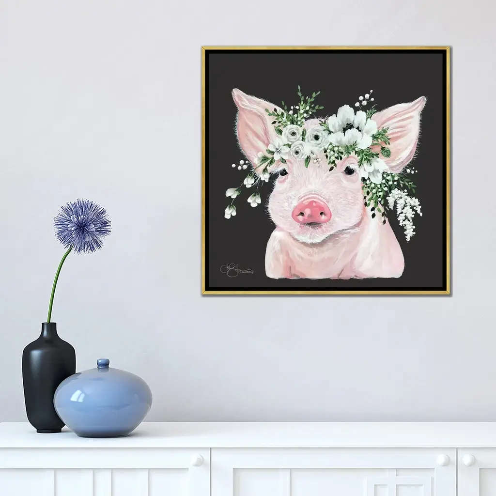 Icanvas "Poppy The Pig" By Hollihocks Art Framed Canvas Print - Black - 37x37