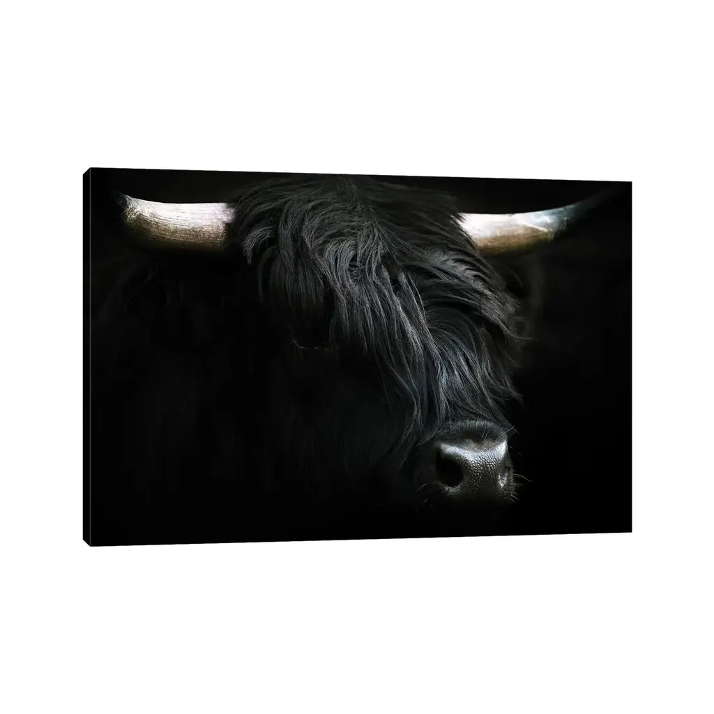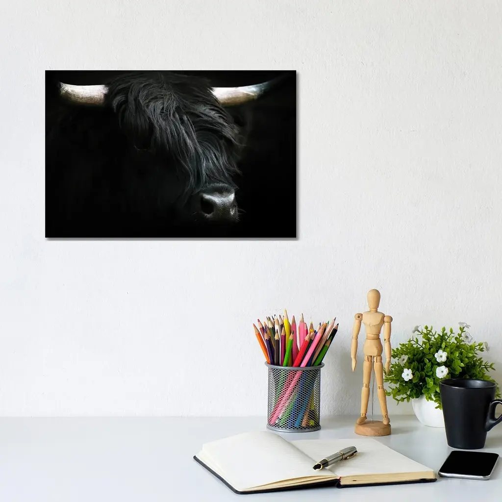 Icanvas "Portrait Of A Black Scottish Wooly Highland Cow In Norway" By Michael Schauer Canvas Print - 8X12x0.75