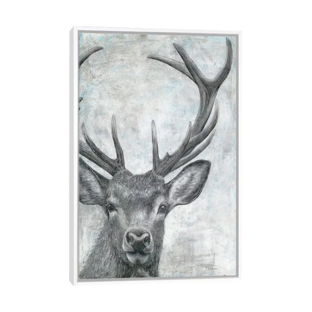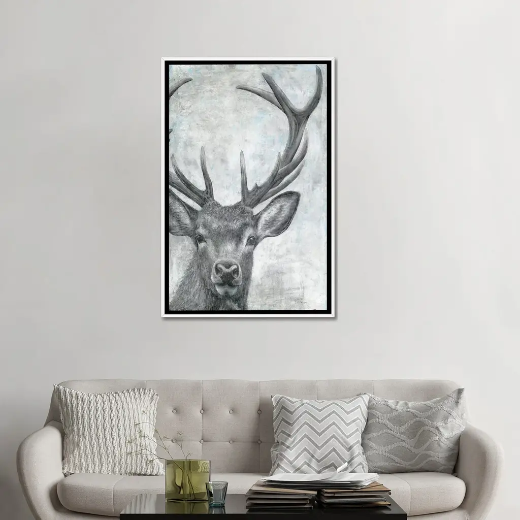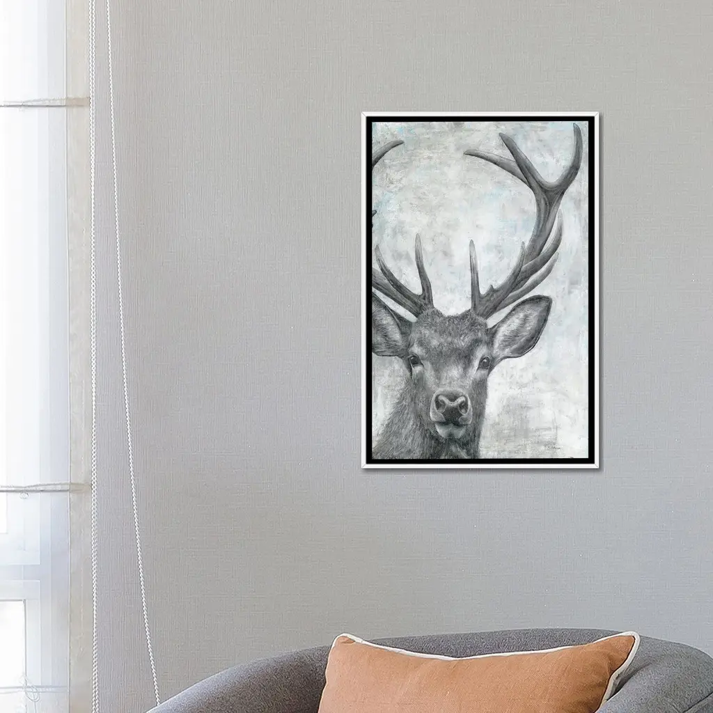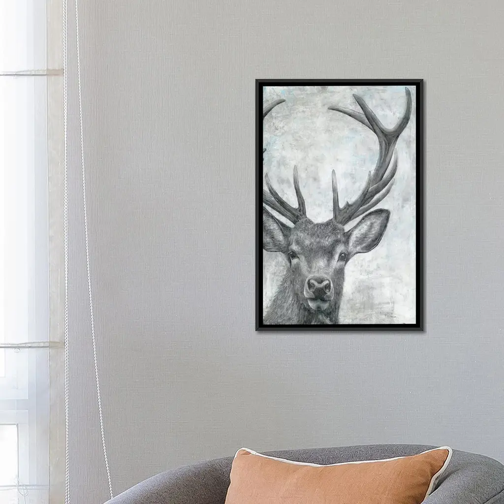 Icanvas "Portrait Of A Deer" By Marie Elaine Cusson Framed Canvas Print - Black - 40x26