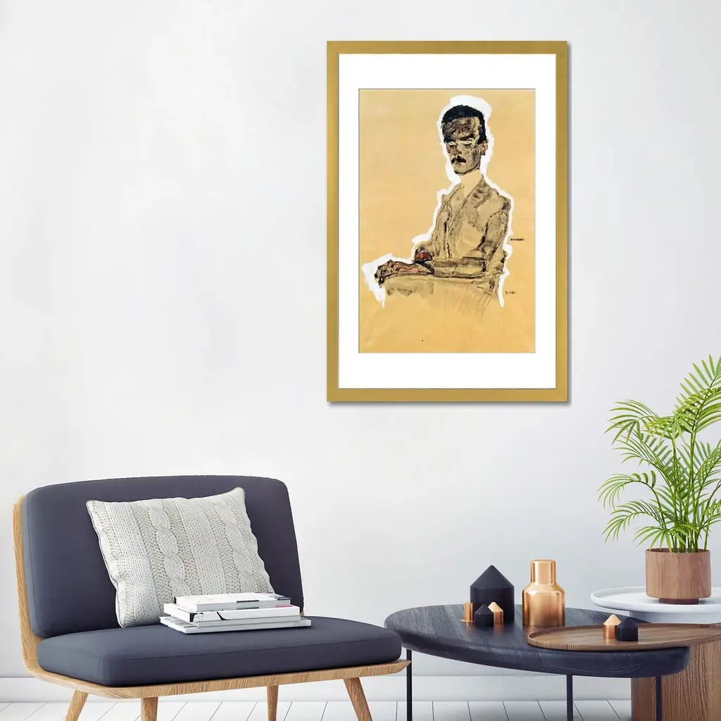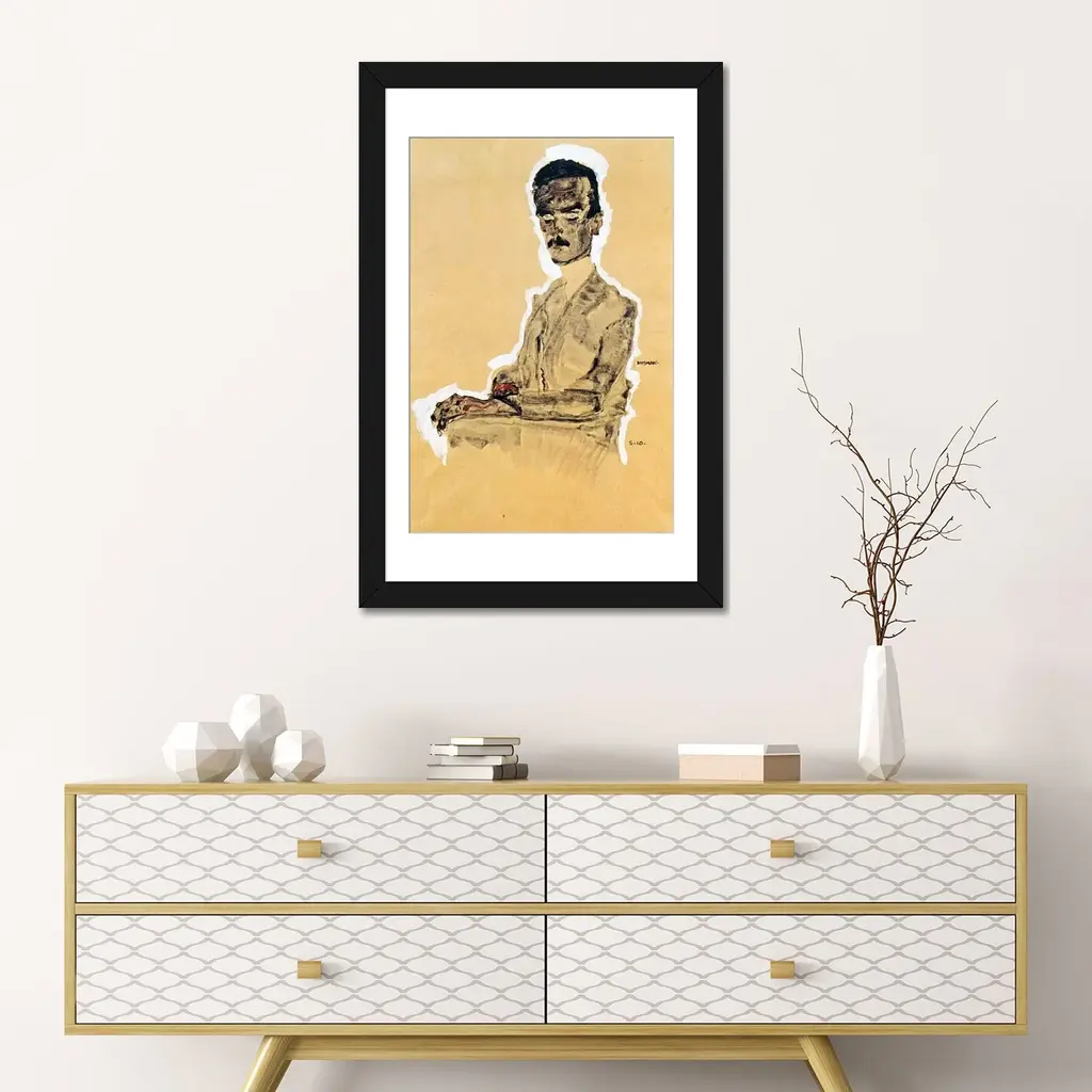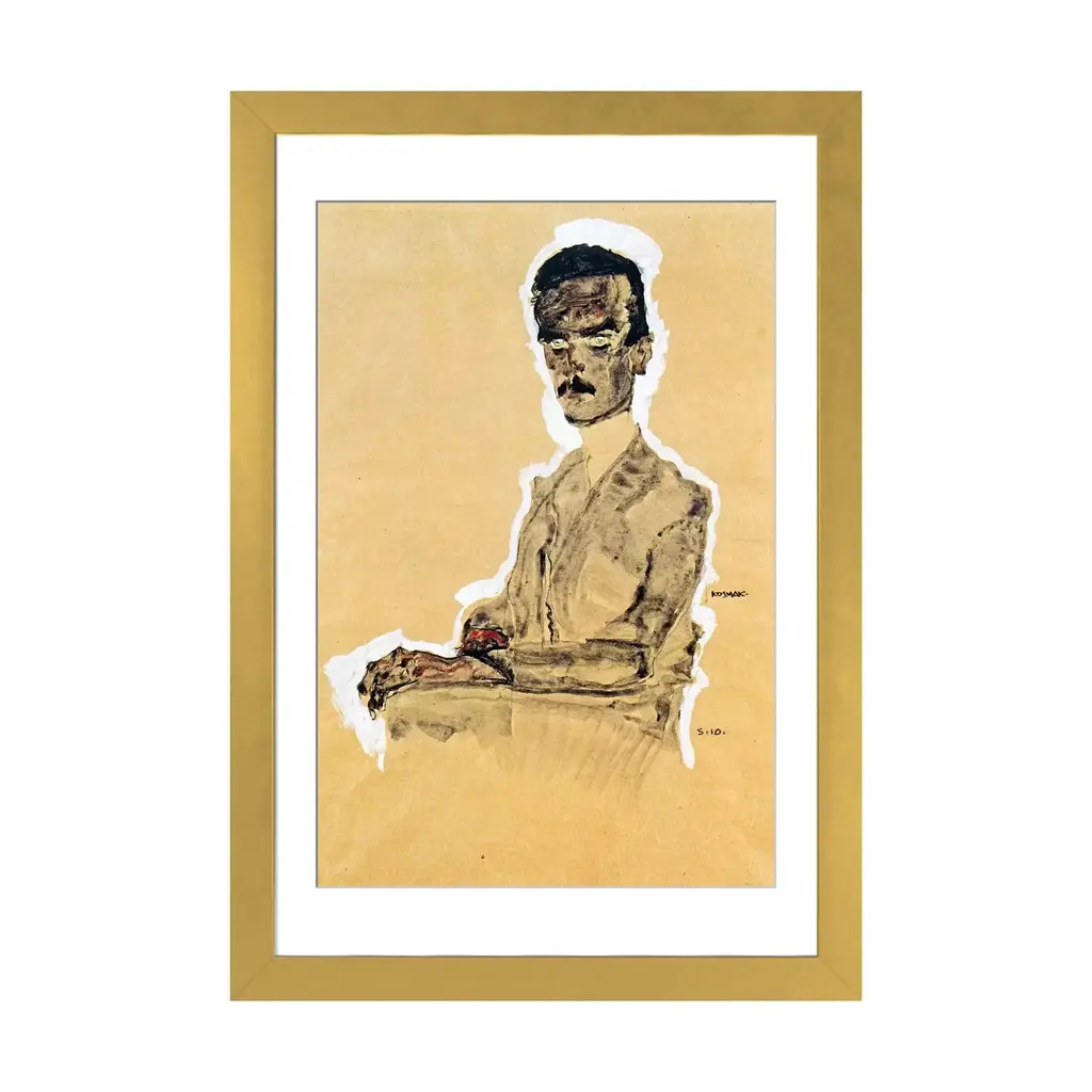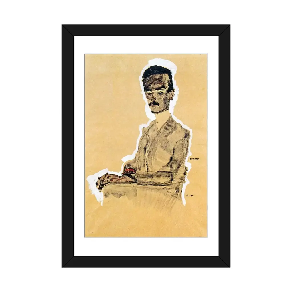 Icanvas "Portrait Of Eduard Kosmack, Seated" By Egon Schiele - Black - 32x24x1