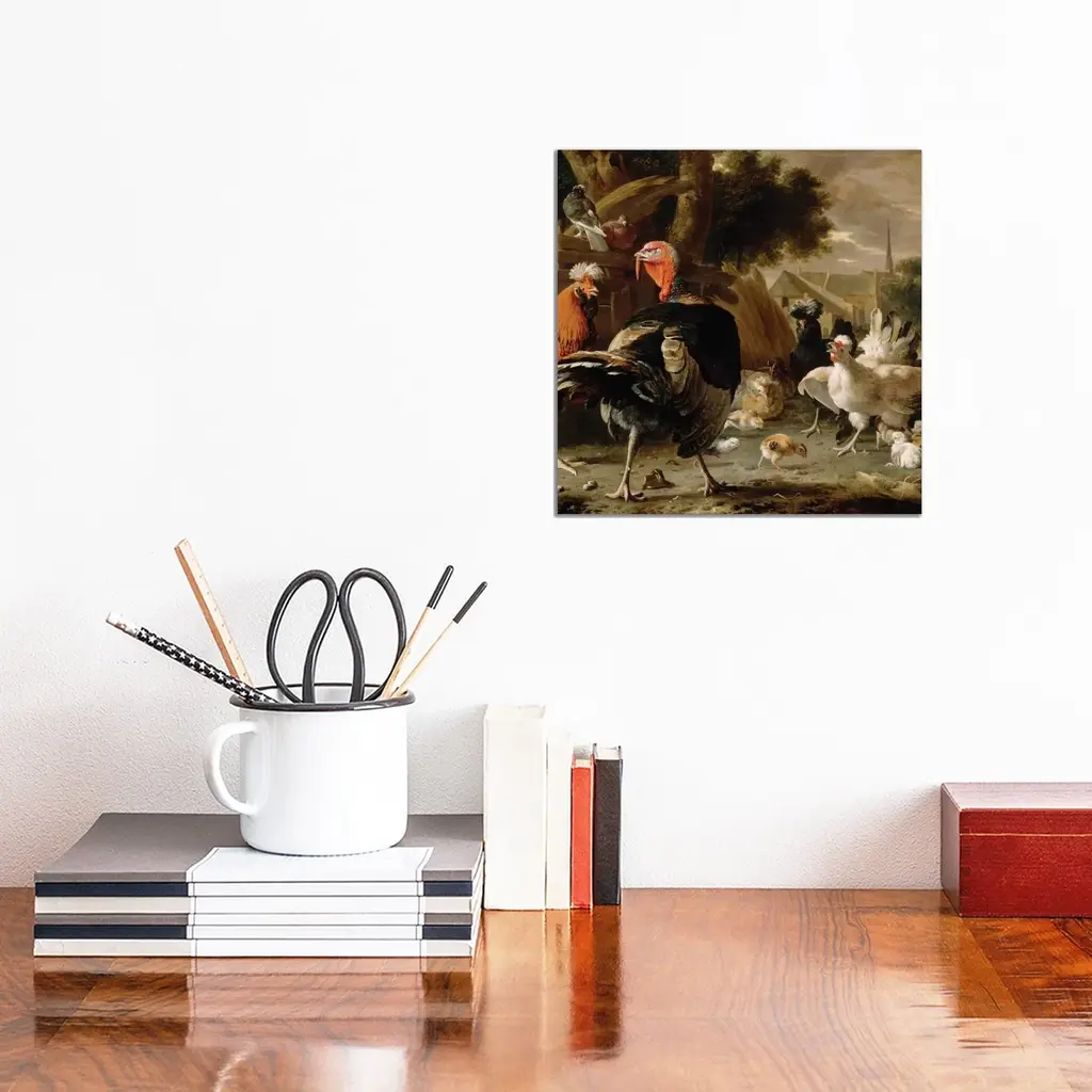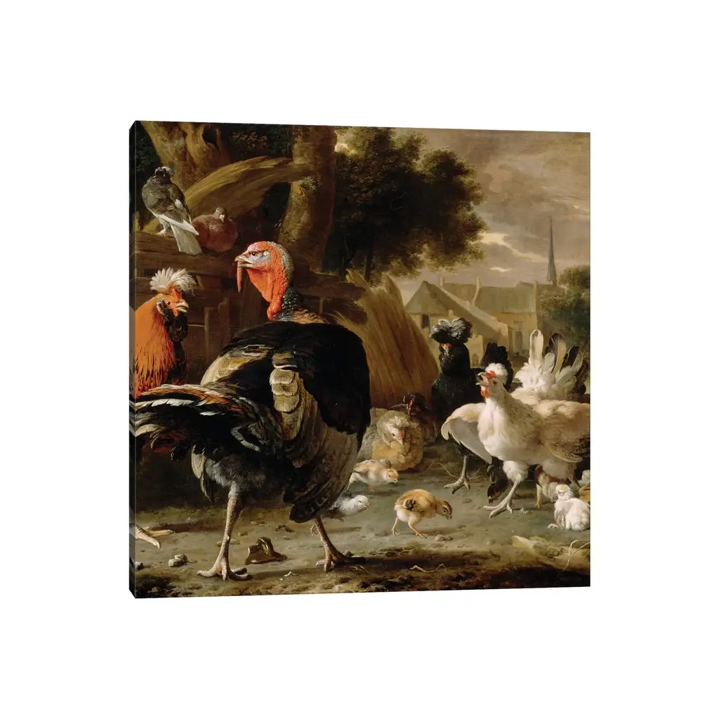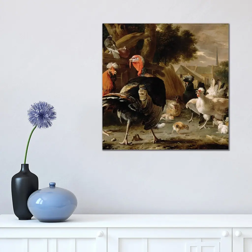 Icanvas "Poultry Yard, C.1668" By Melchior De Hondecoeter Canvas Print - 12x12x1.5