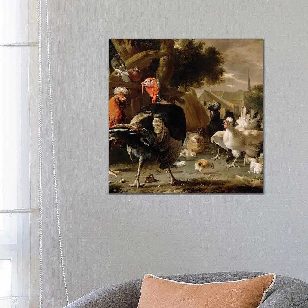 Icanvas "Poultry Yard, C.1668" By Melchior De Hondecoeter Canvas Print - 18x18x1.5